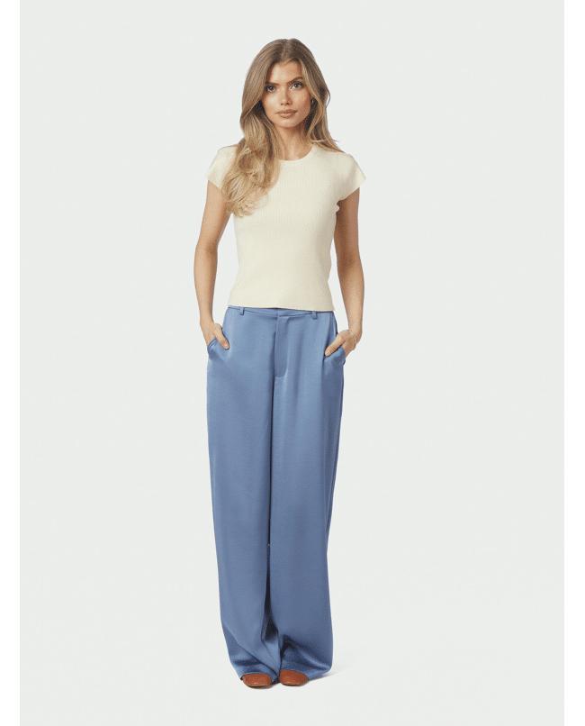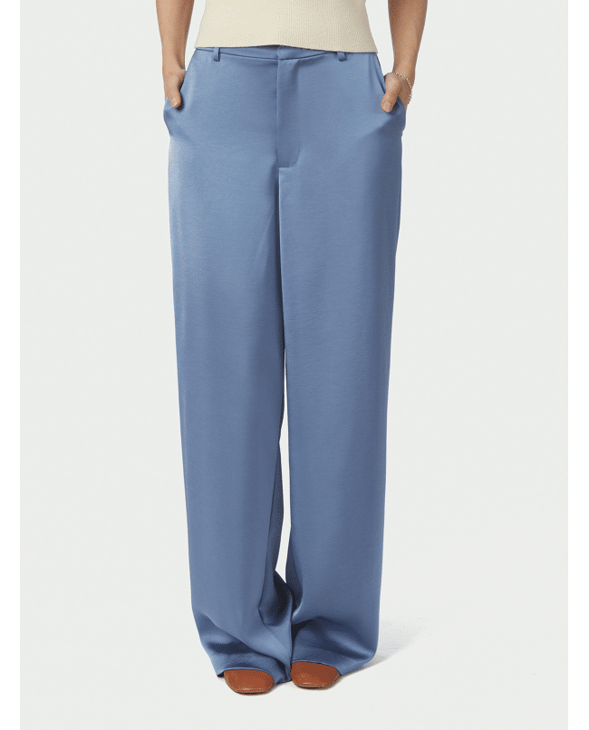 De heavy sateen kwaliteit voelt rijk aan en valt prachtig soepel langs het lichaam. Een tijdloze broek die je eindeloos combineert – van blazer tot knit.
