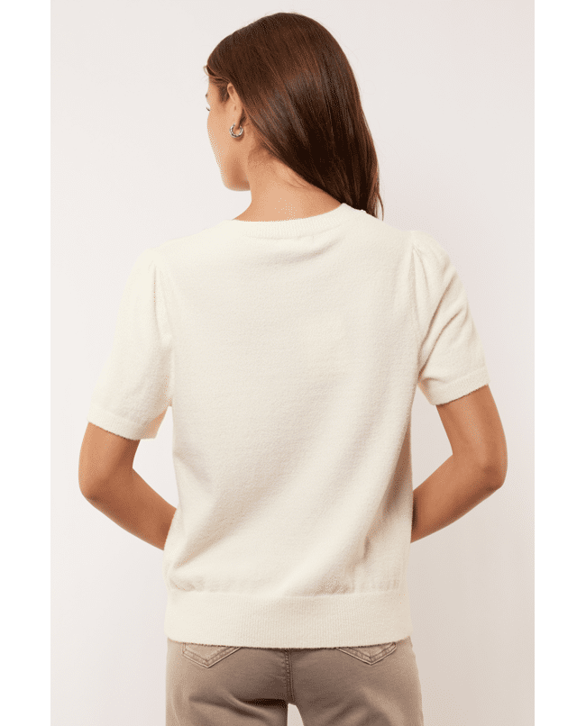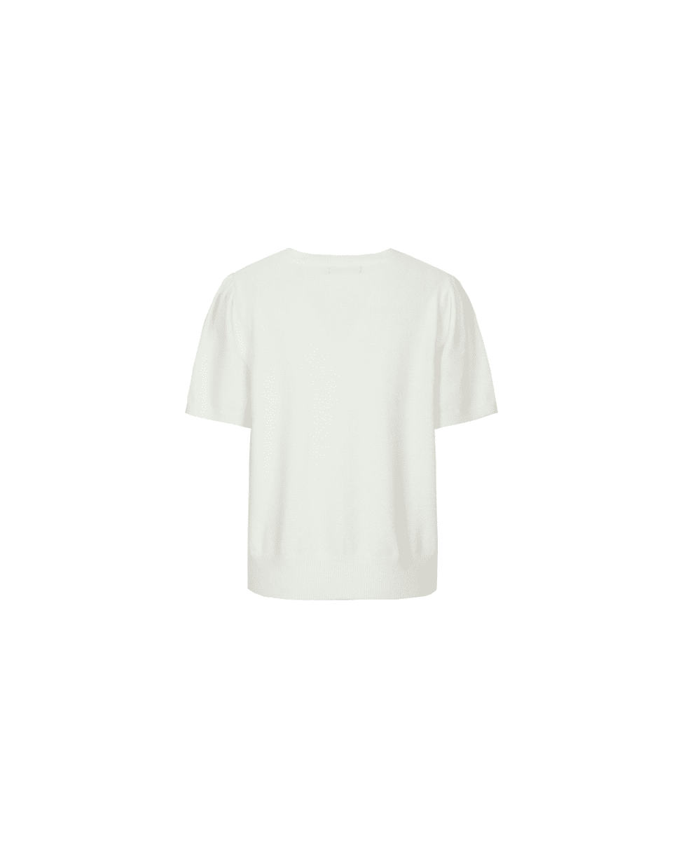 Deze fijngebreide top in offwhite voelt licht en vrouwelijk. Mooi op een jeans, rok of als zachte tegenhanger van een stoer jasje.
