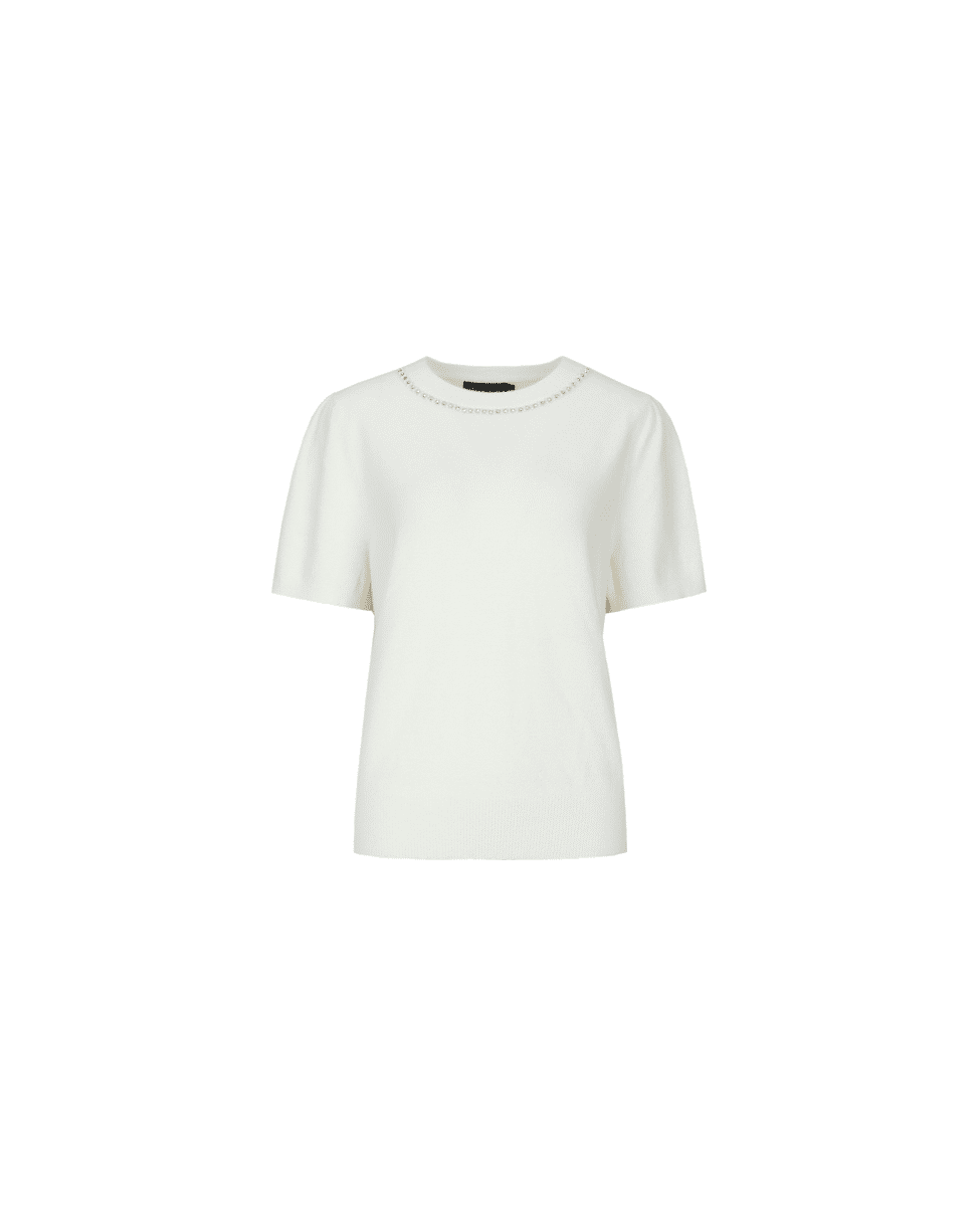 Etta top - Gebreide damestrui van G-maxx met sierstenen aan de ronde hals en korte mouwen