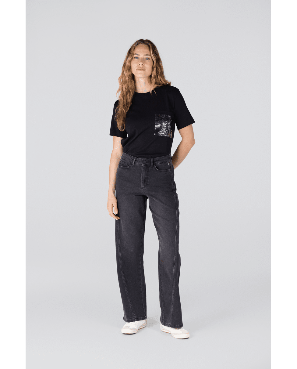 Een moderne wide leg jeans met subtiele sparkle. Ideaal voor wie houdt van comfort met een twist.