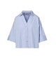 EZRA - Dames gestreepte blouse van Beaumont met siersteentjes, korte mouwen, V-hals met klassieke kraag en knoopsluiting