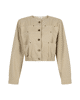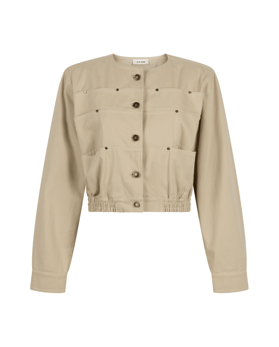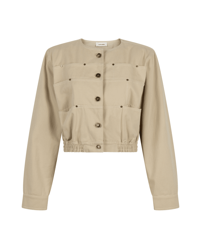 De subtiele studs en de ronde hals geven dit jasje een eigentijdse twist. Casual, maar met net genoeg detail om je outfit karakter te geven.