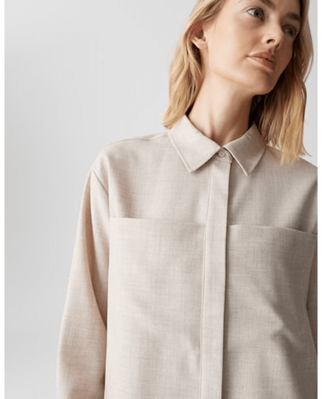 De combinatie van een los silhouet en fijne details zoals de verborgen knoopsluiting maakt dit een veelzijdig item met karakter.