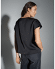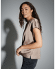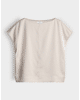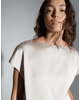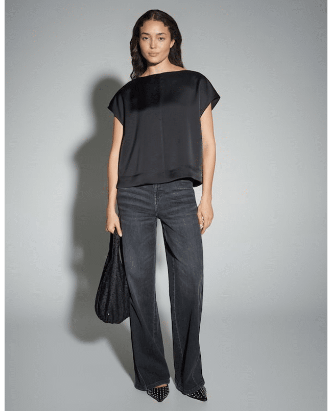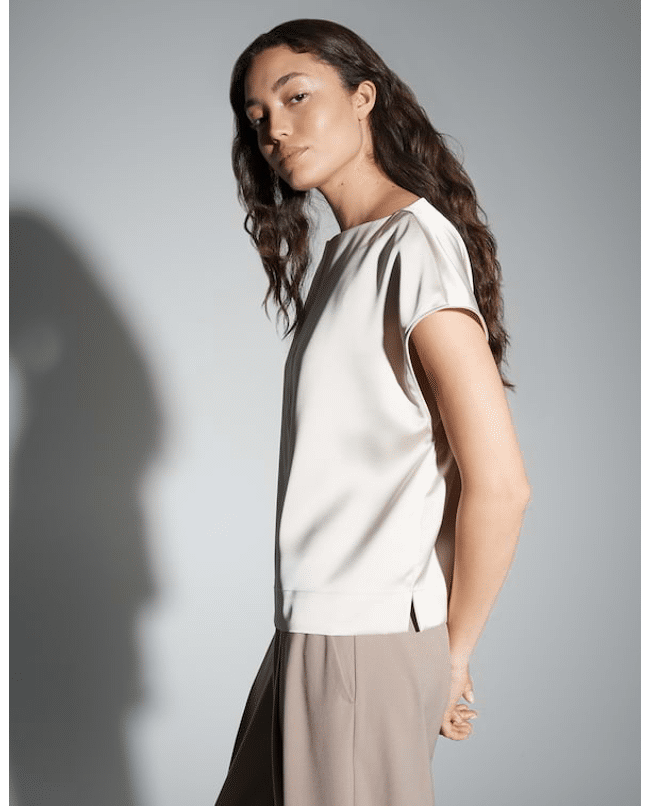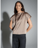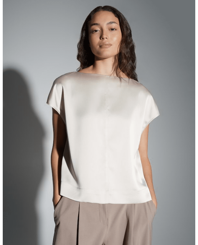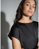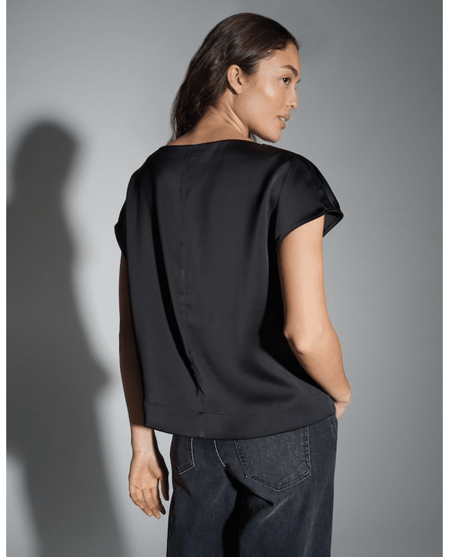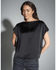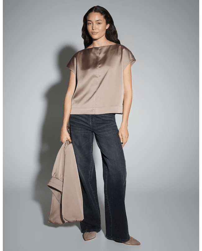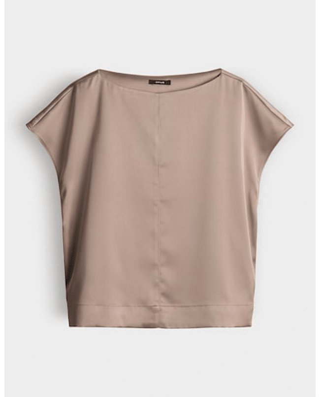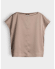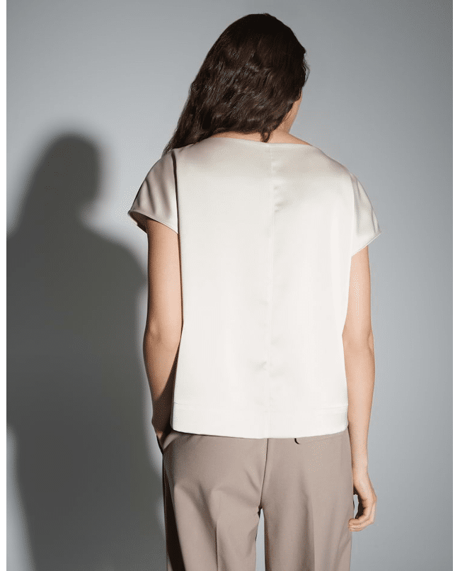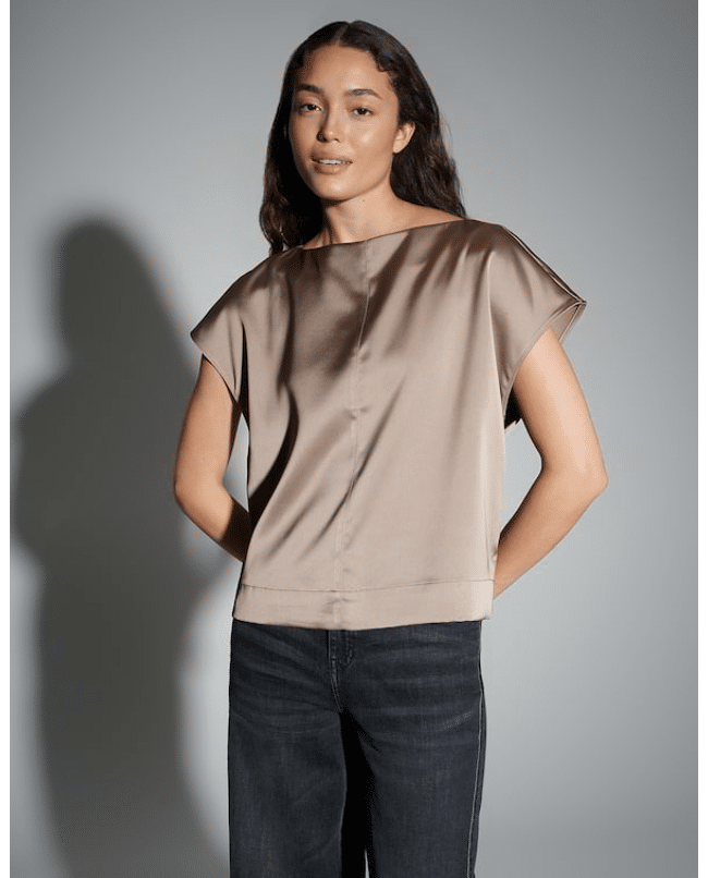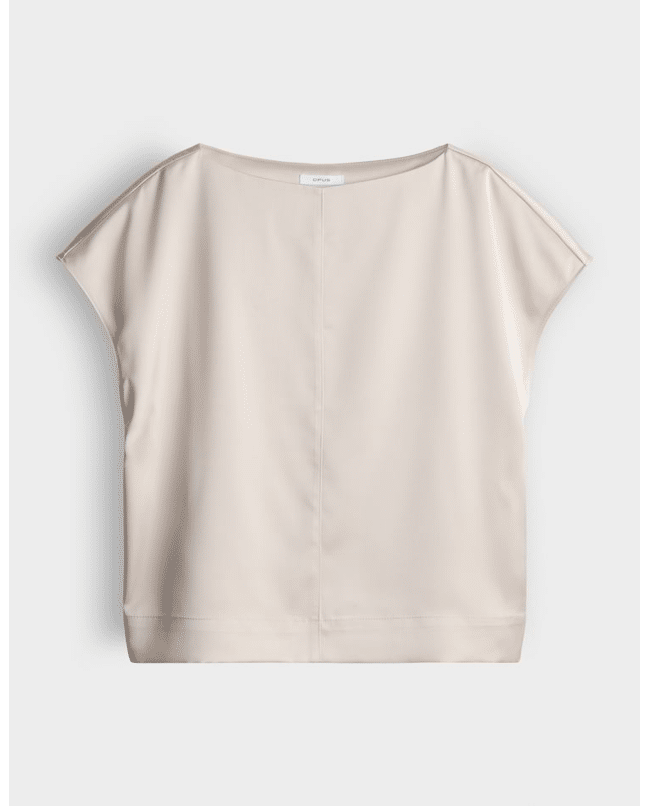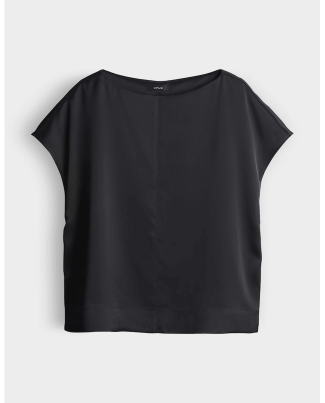 FESTIVA – Dames top van Opus van glanzend satijn, boothals en korte mouwen