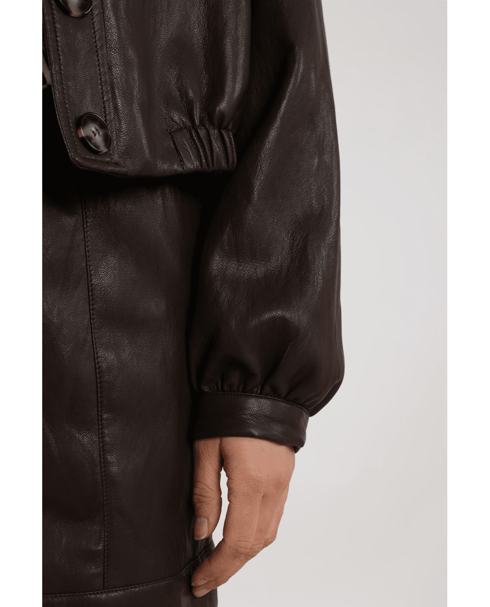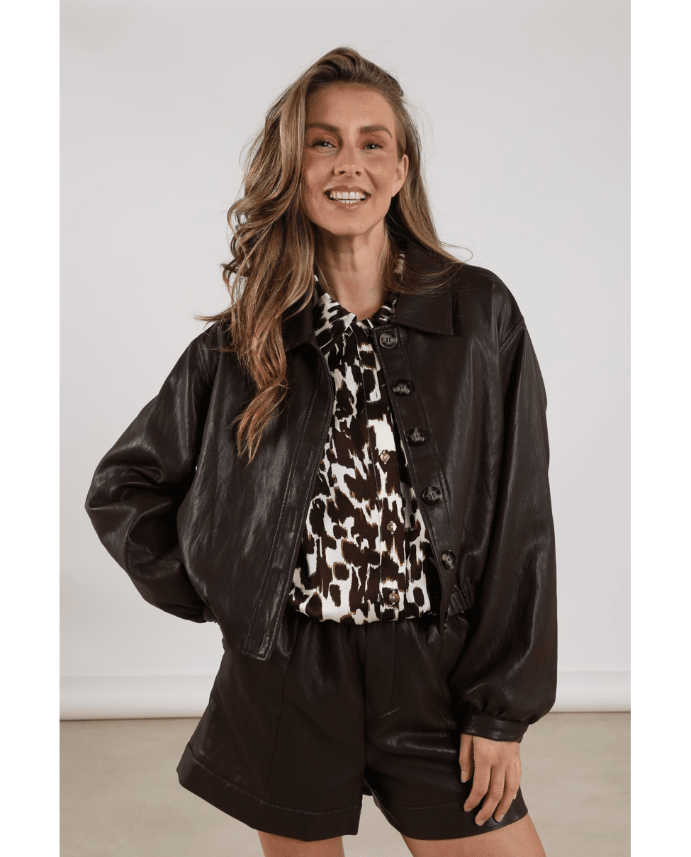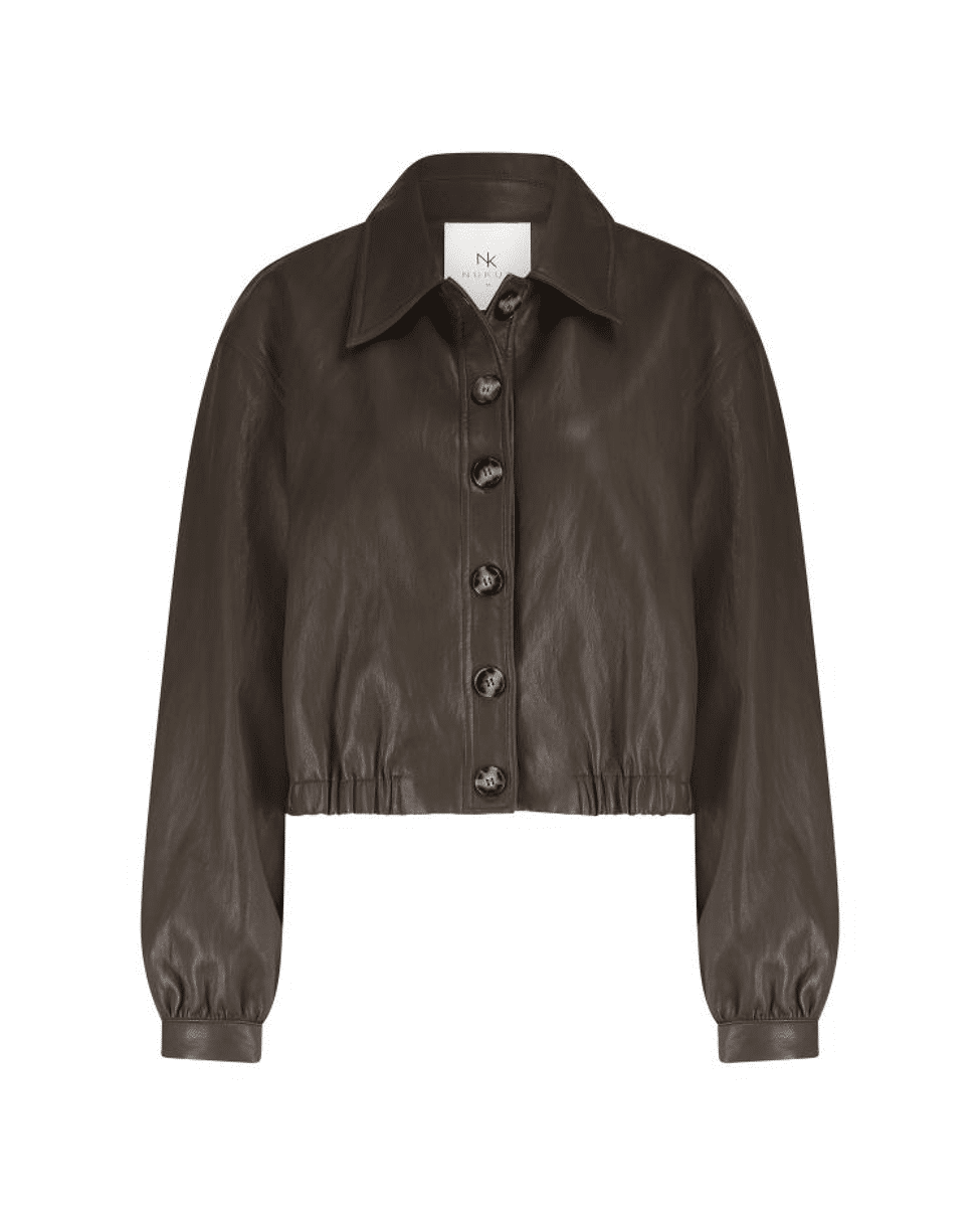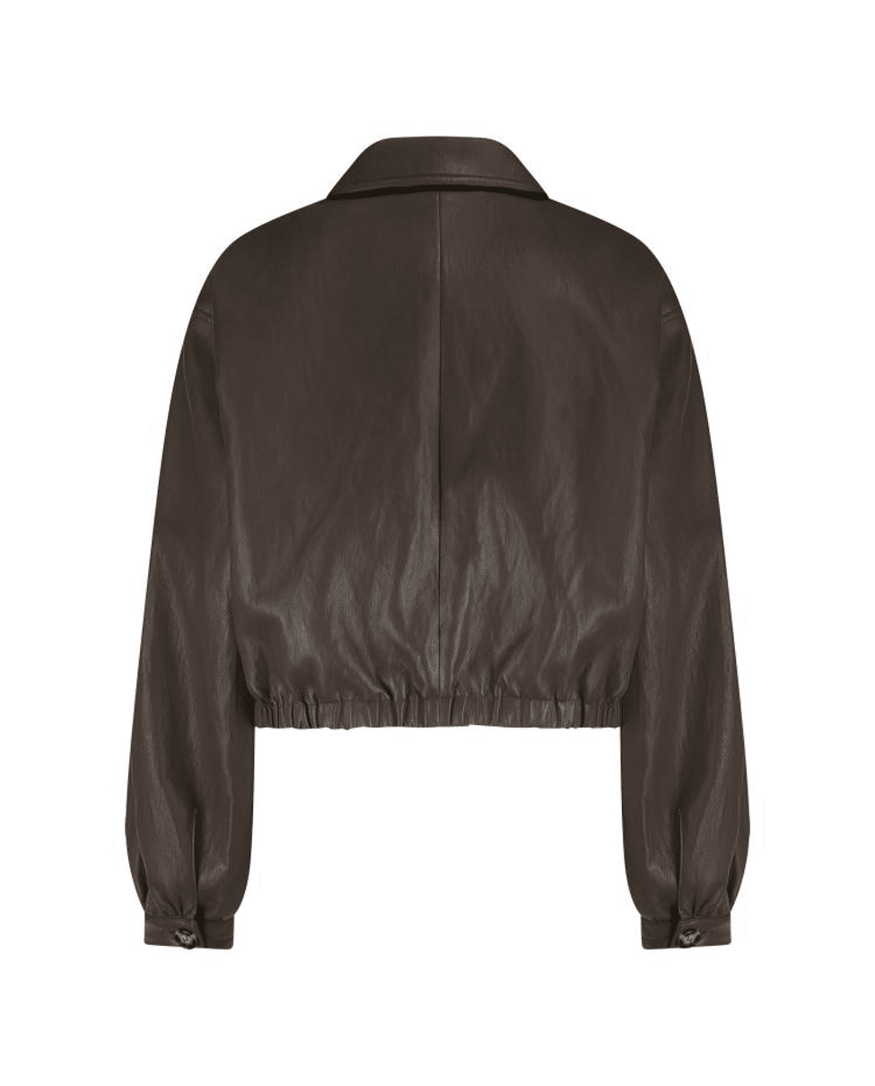 Fiene Jacket – Imitatieleren damesjasje van Nukus met elastiek in de boord, knoopsluiting, klassieke kraag en lange mouwen
