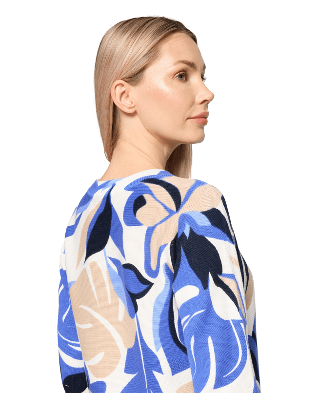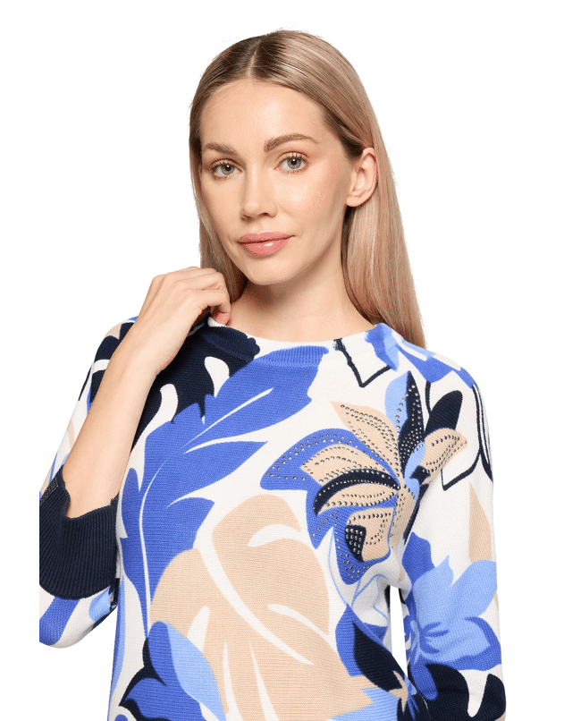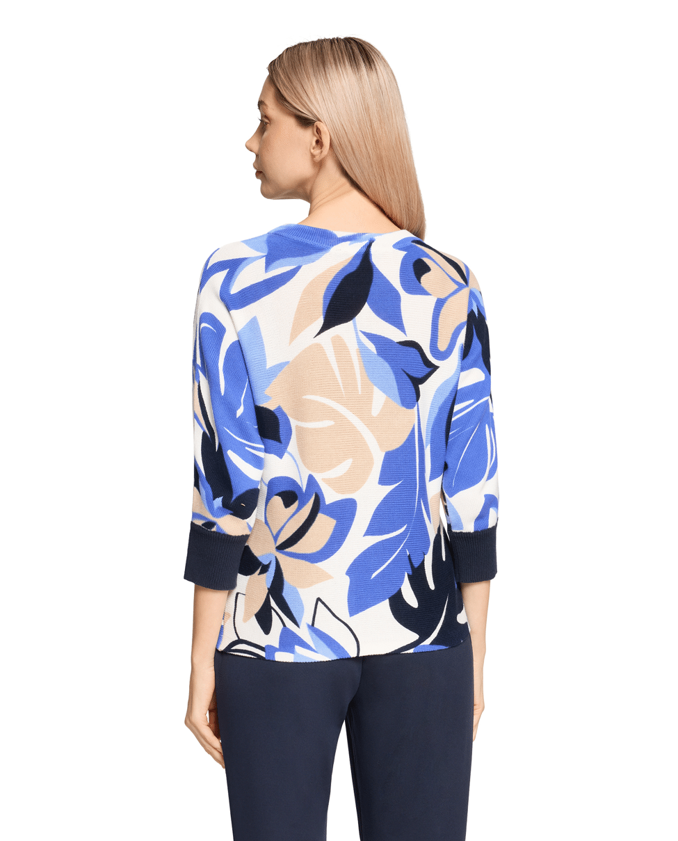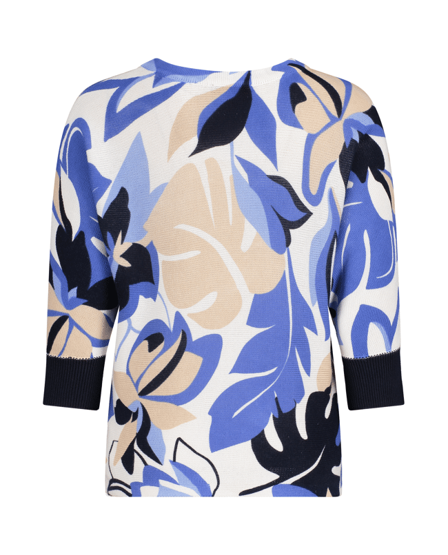 Deze katoenen trui met 3/4 mouw en bloemendessin is een luchtige keuze voor de lente en frisse zomerdagen. Voor wie houdt van kleur, comfort en een vleugje flair.