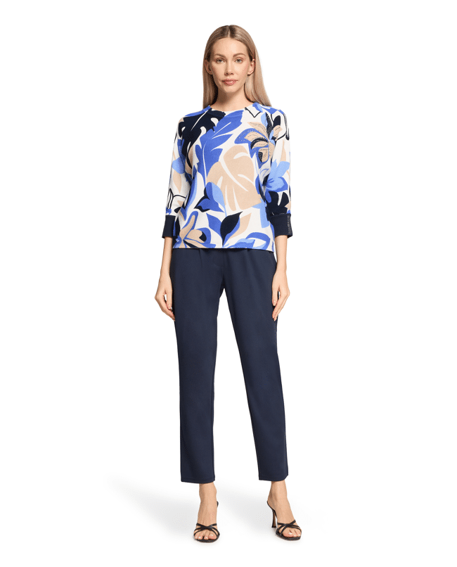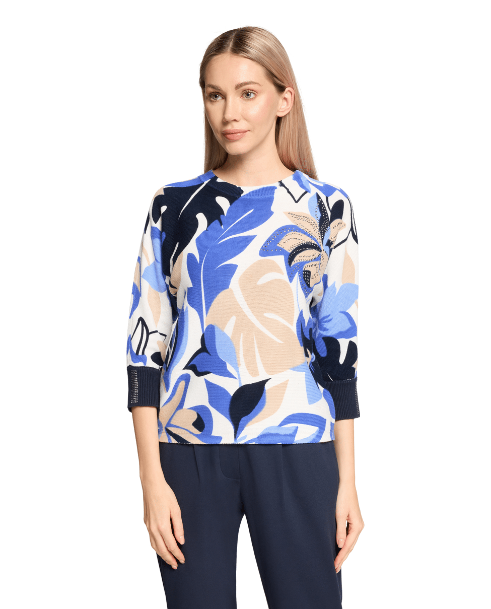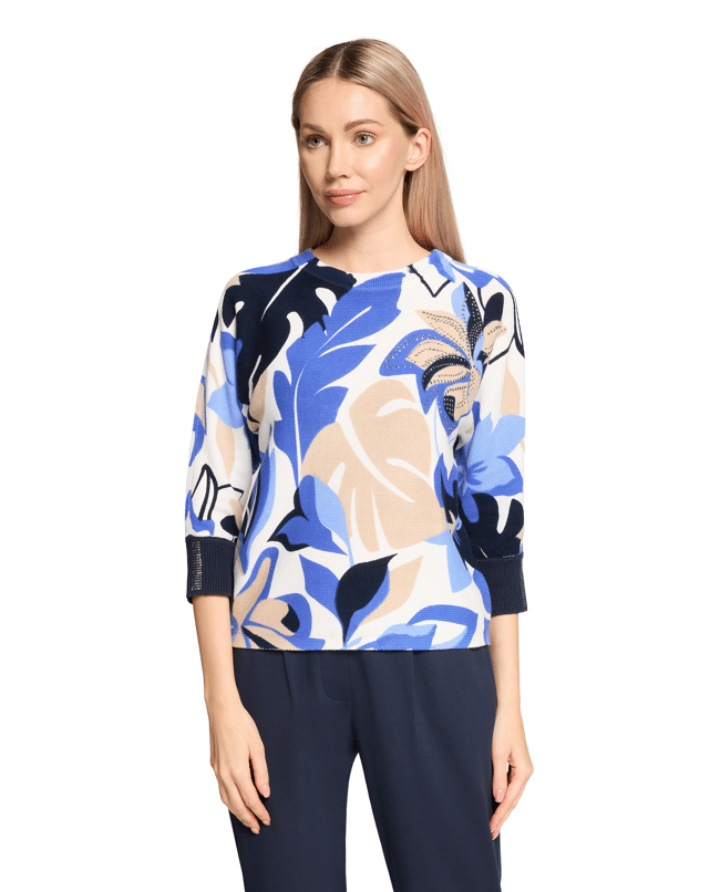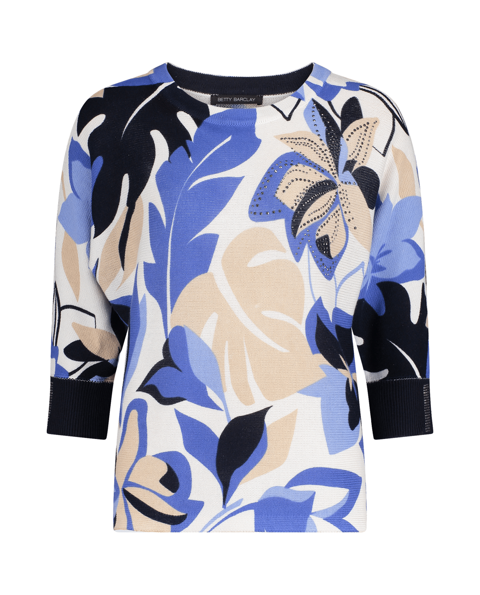 Fijn gebreide dames trui van Betty Barclay met bloemendessin, details met strassteentjes, 3/4 vleermuismouwen en ronde halslijn