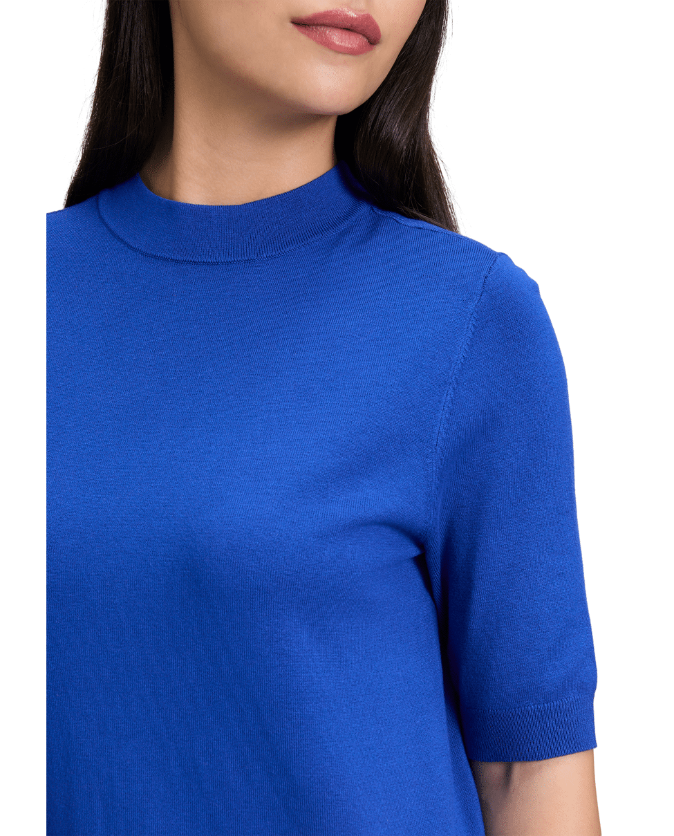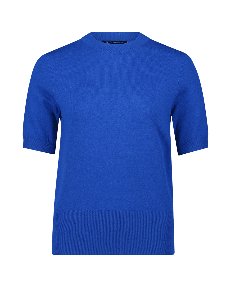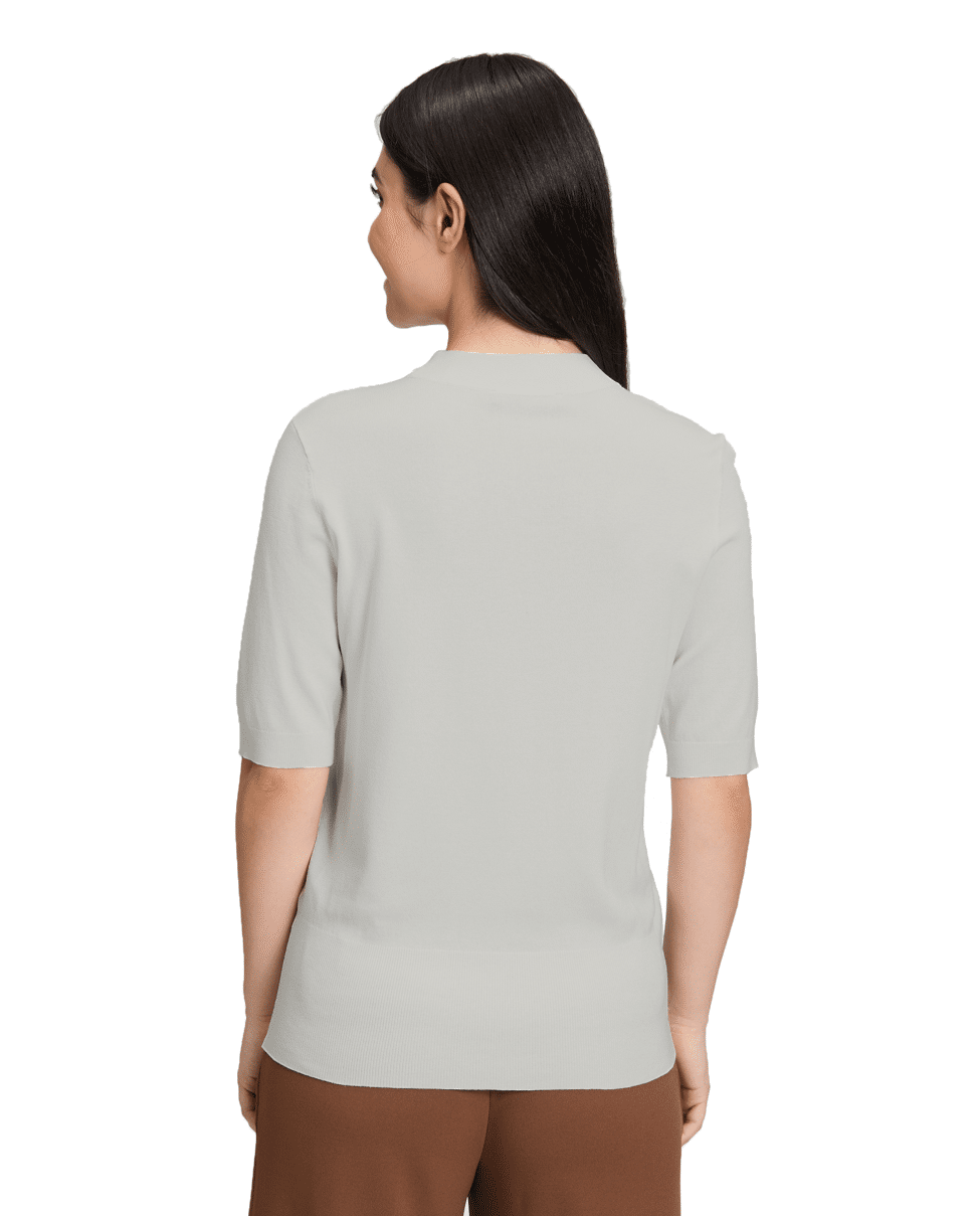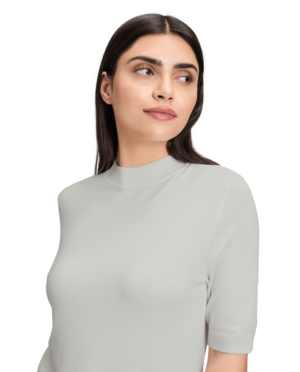 Fijn gebreide dames trui van Betty Barclay met korte mouwen, hoge zoomboord en opstaande halslijn