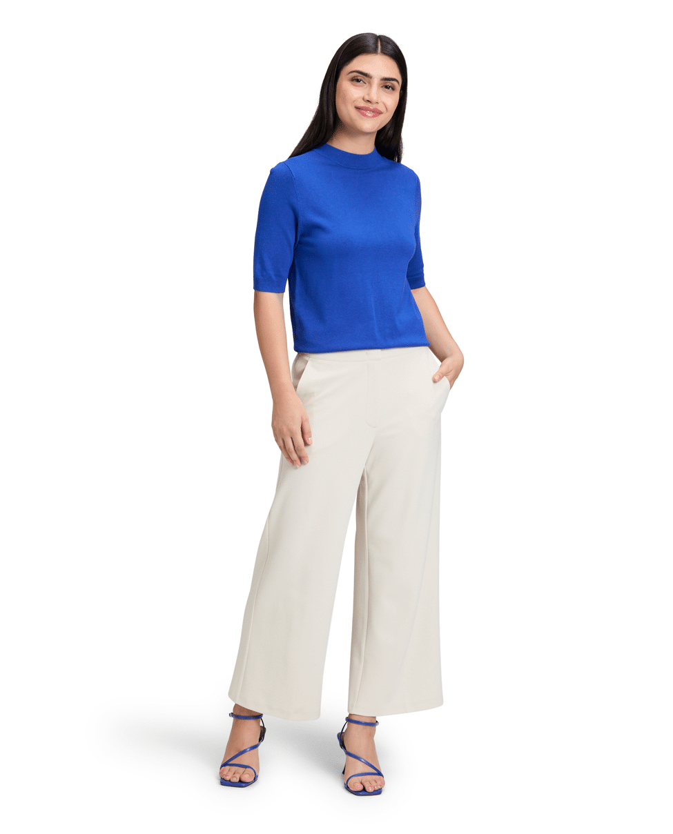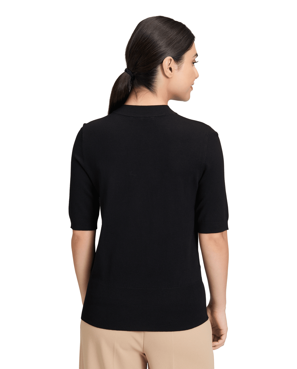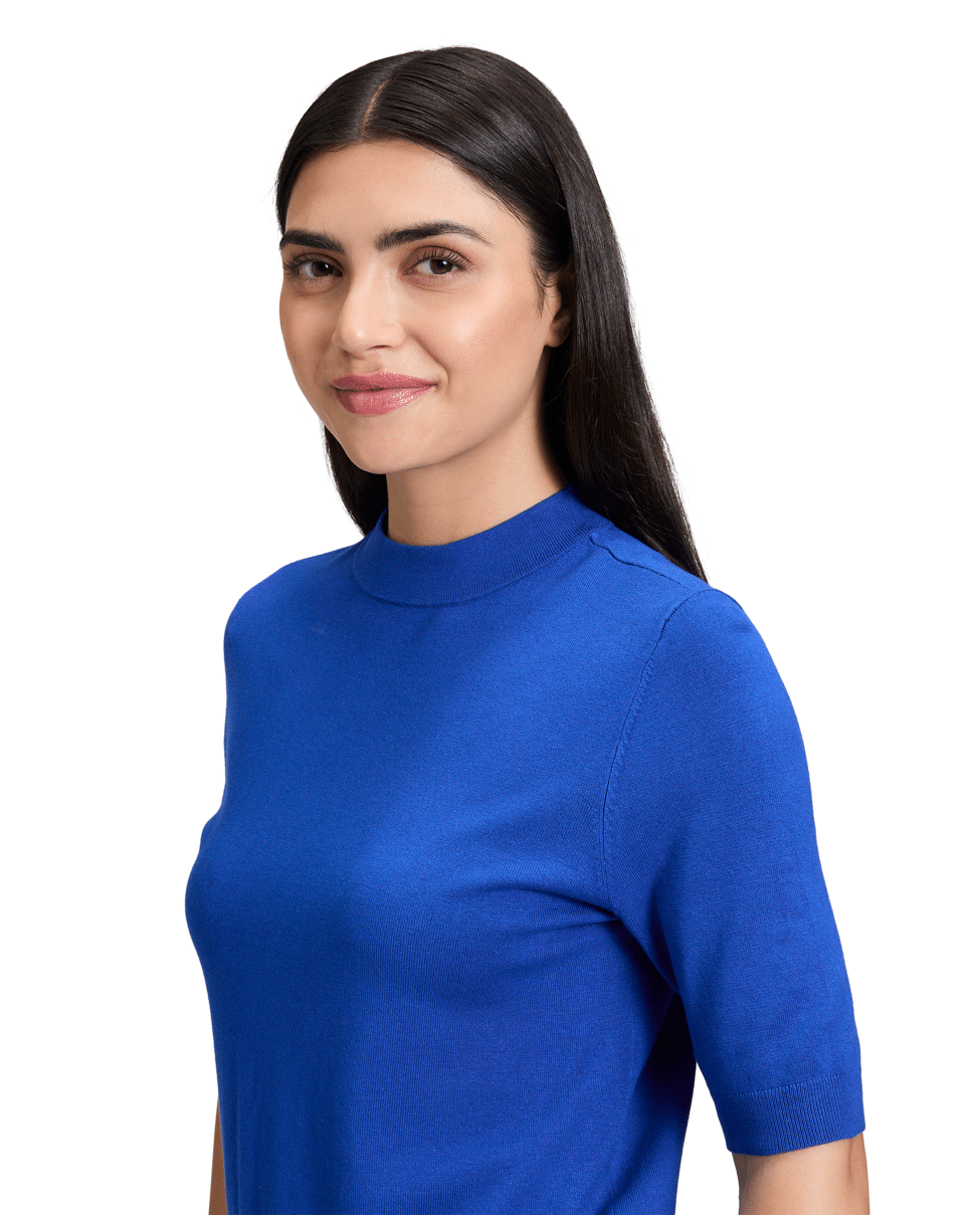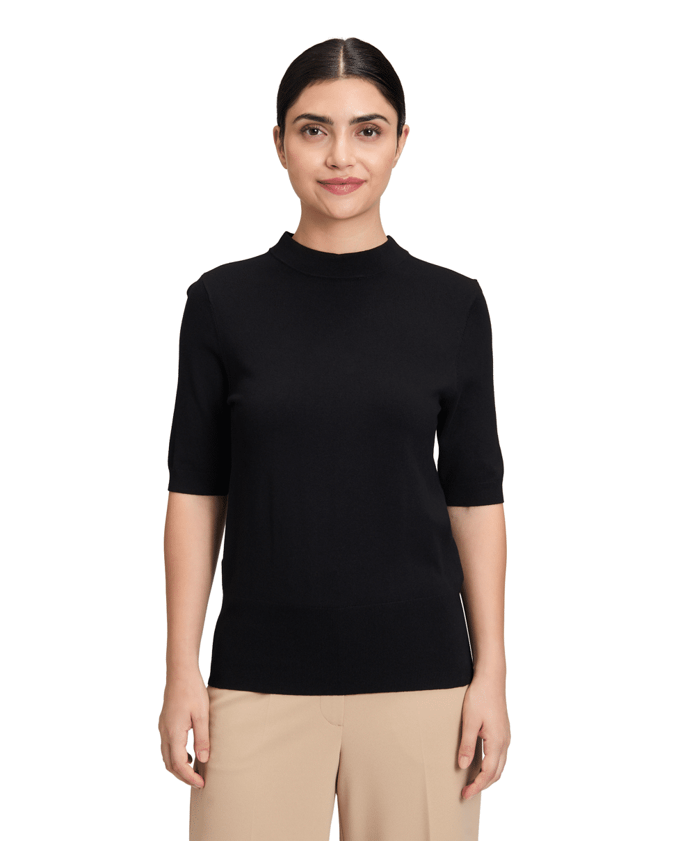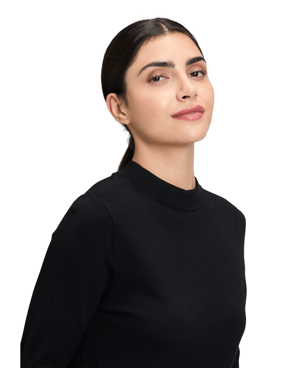 Fijn gebreide dames trui van Betty Barclay met korte mouwen, hoge zoomboord en opstaande halslijn