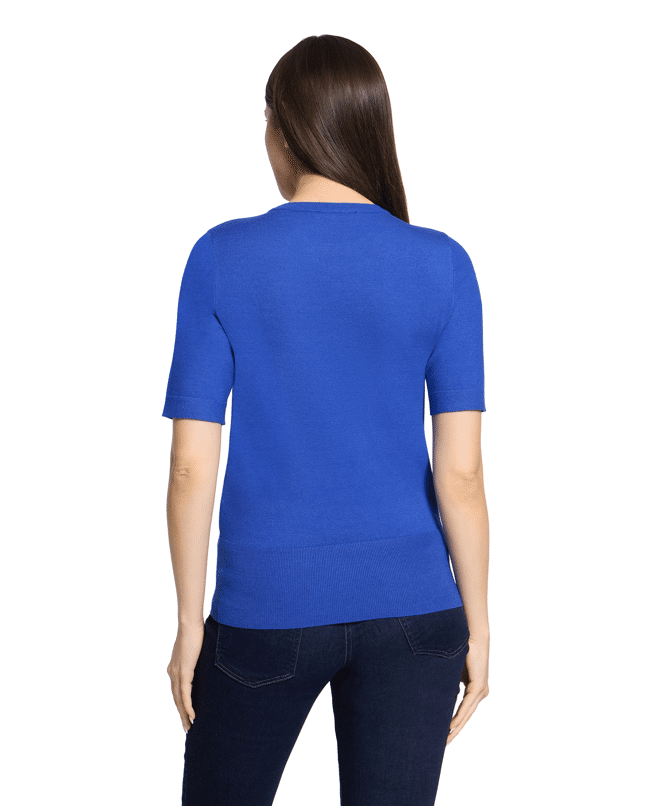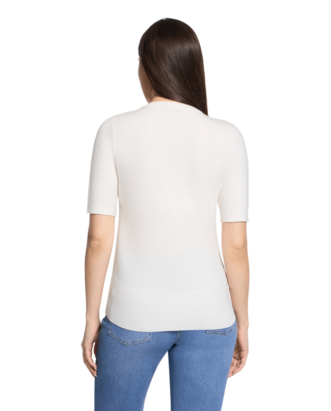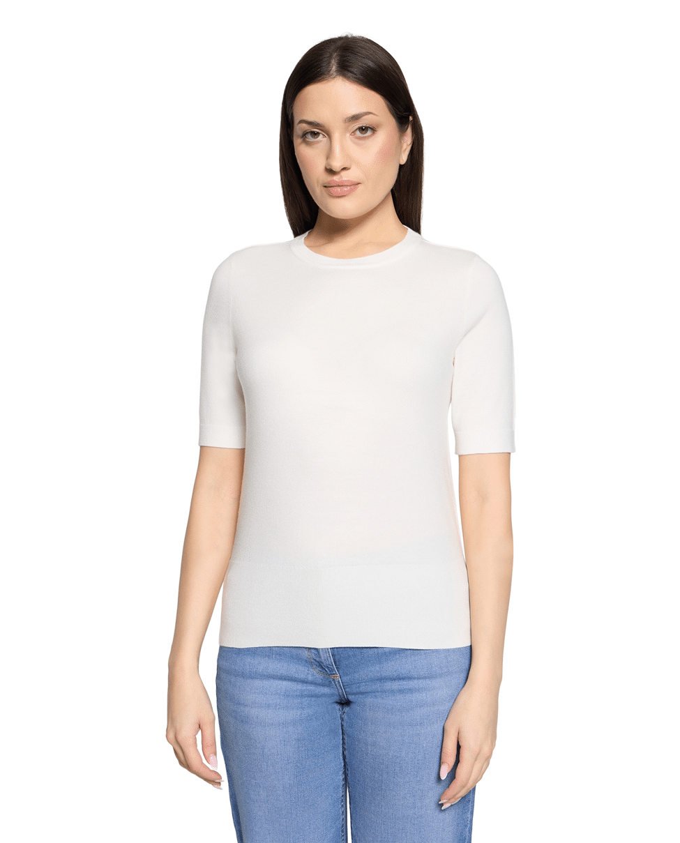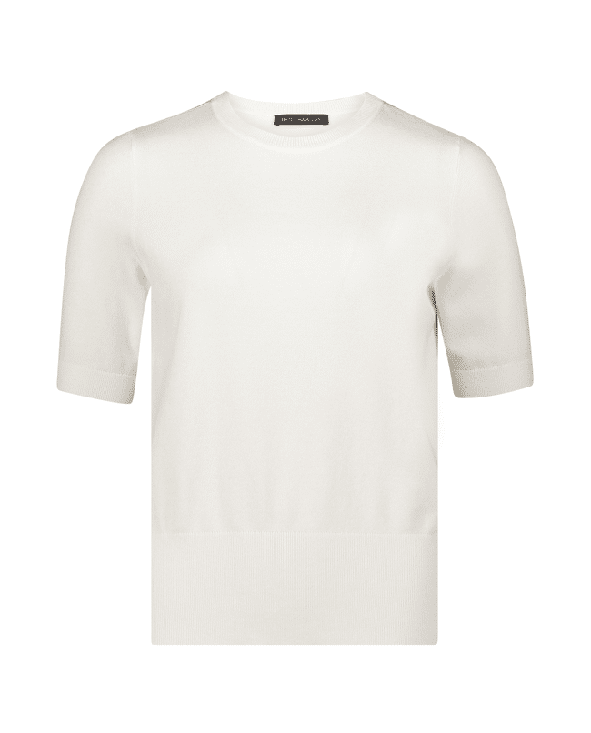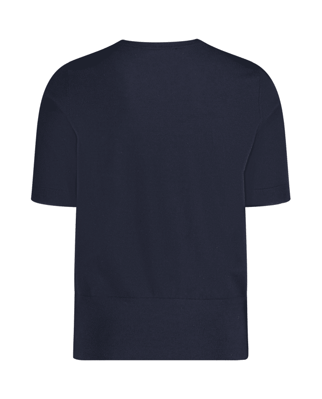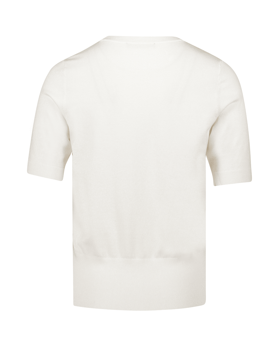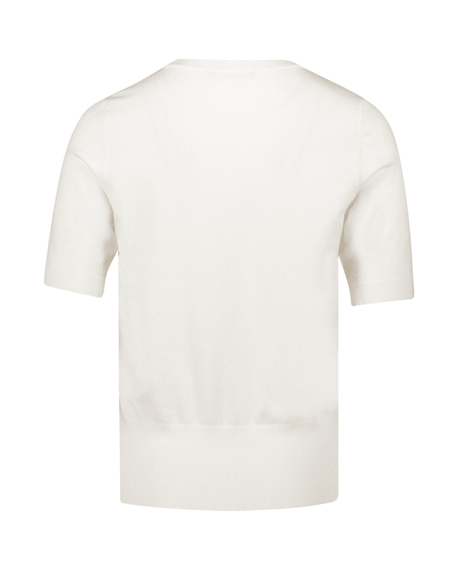 Deze fijngebreide trui met korte mouwen is een stijlvolle basic voor het voorjaar. Perfect onder een blazer of solo op een lichte jeans.