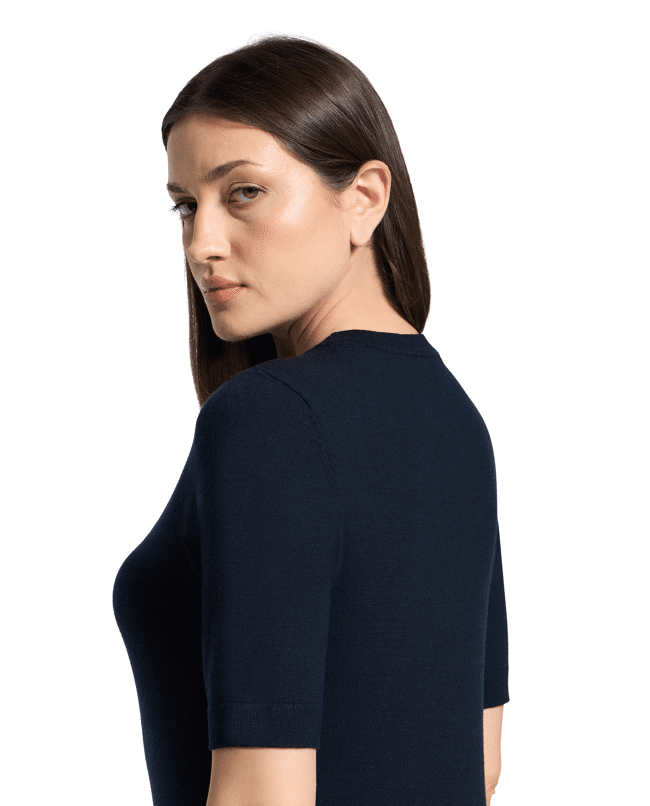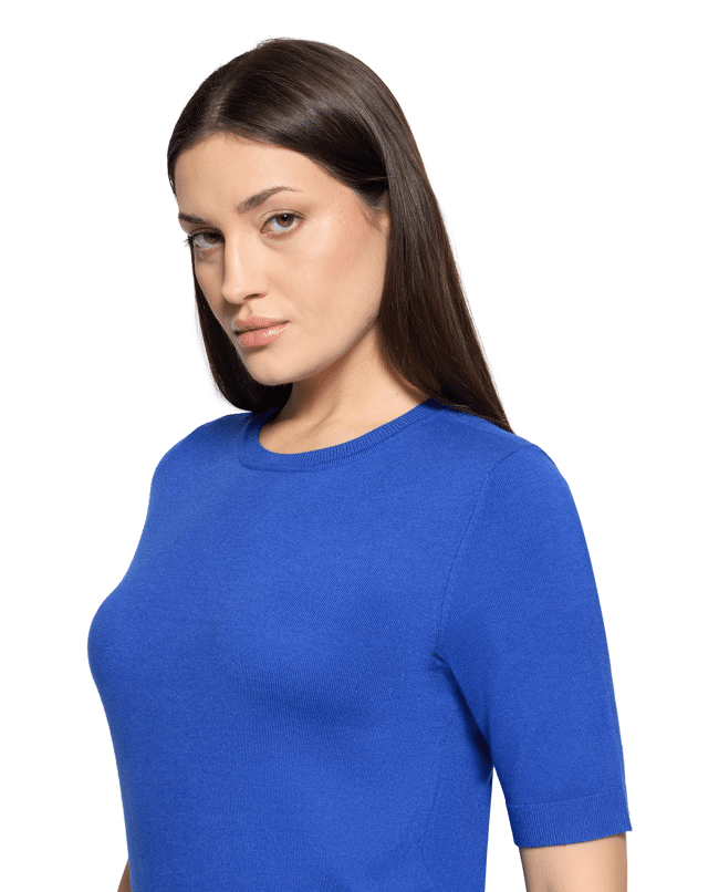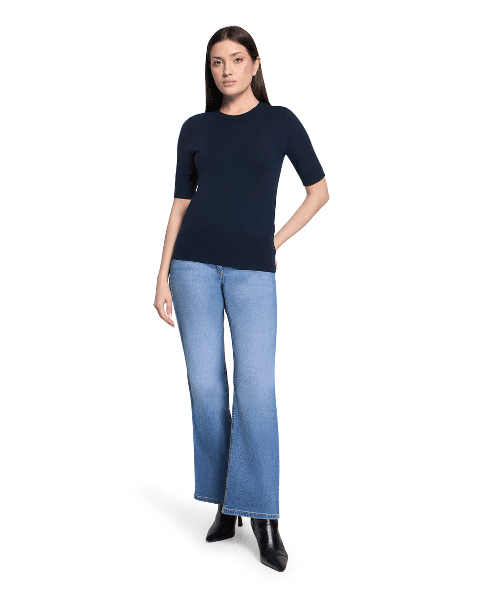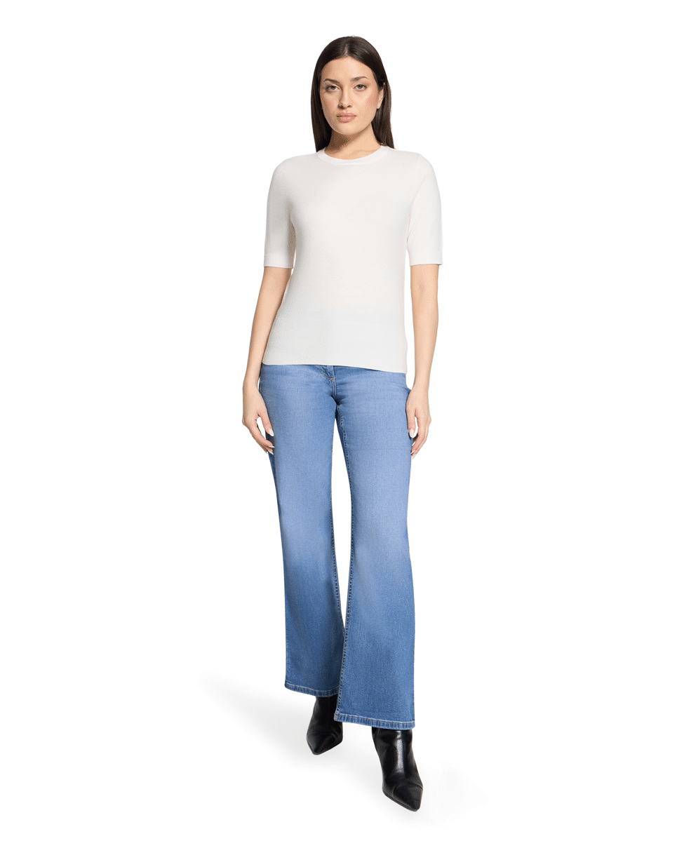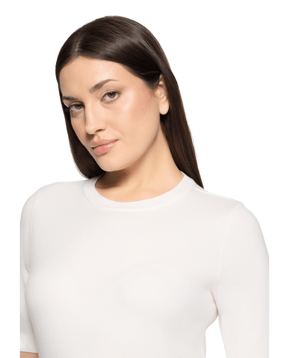Deze fijngebreide trui met korte mouwen is een stijlvolle basic voor het voorjaar. Perfect onder een blazer of solo op een lichte jeans.