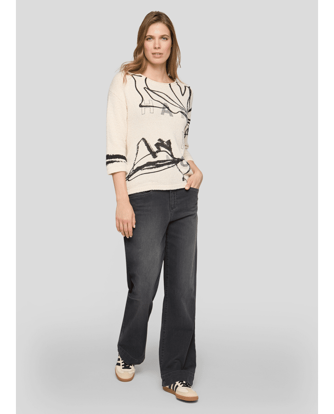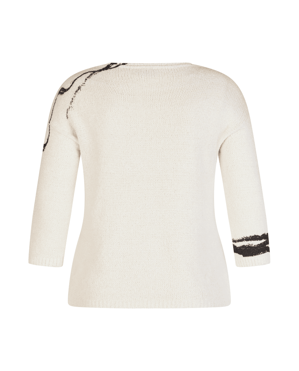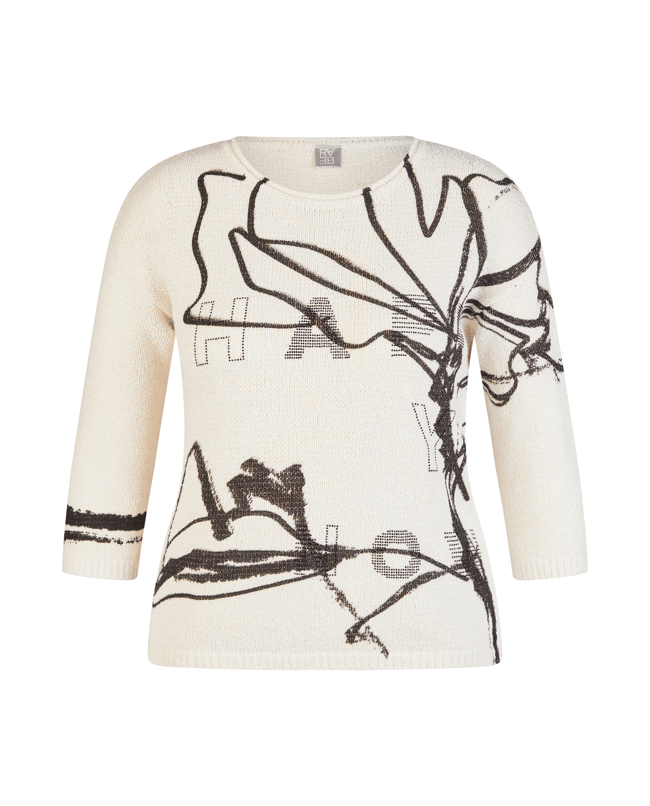 De artistieke print en 3/4-mouwen maken deze trui stijlvol én luchtig – perfect voor het tussenseizoen.