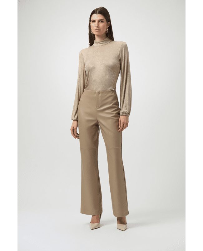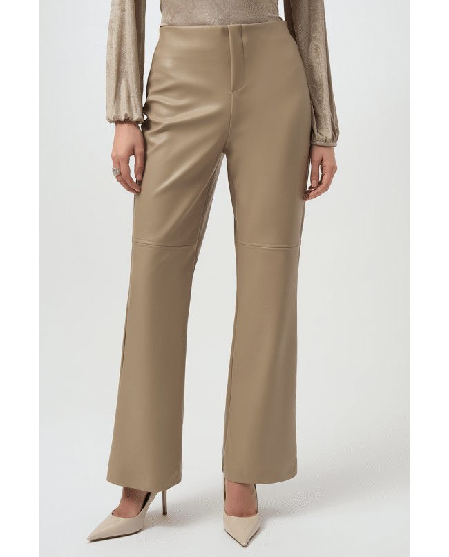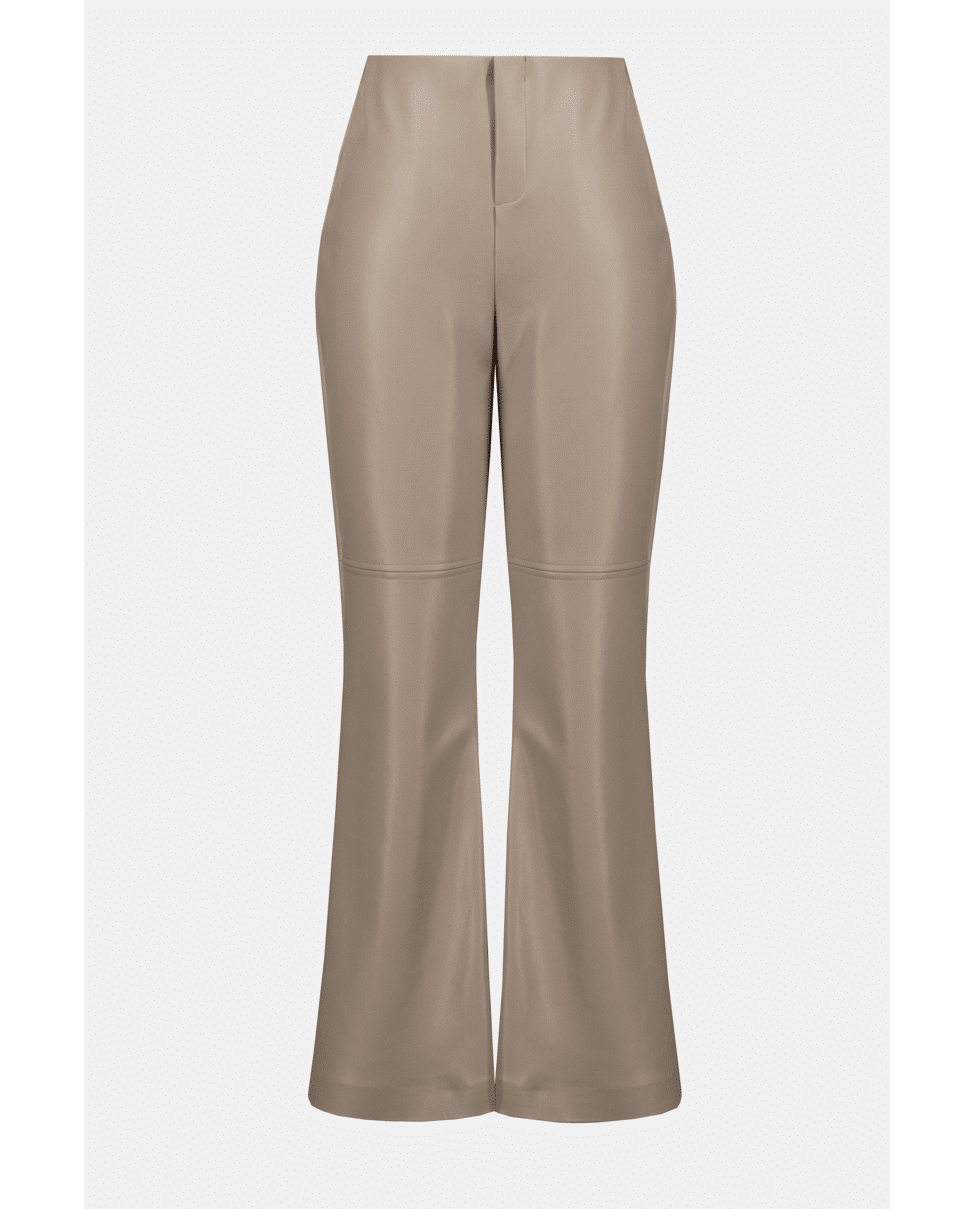 Deze flared broek in imitatieleer is stijlvol, comfortabel en net even anders. Perfect voor werkdagen, diners of elke gelegenheid waarbij je moeiteloos chic wilt zijn.