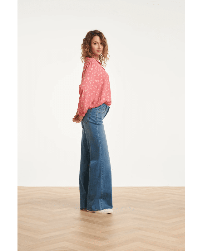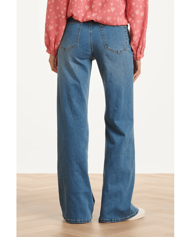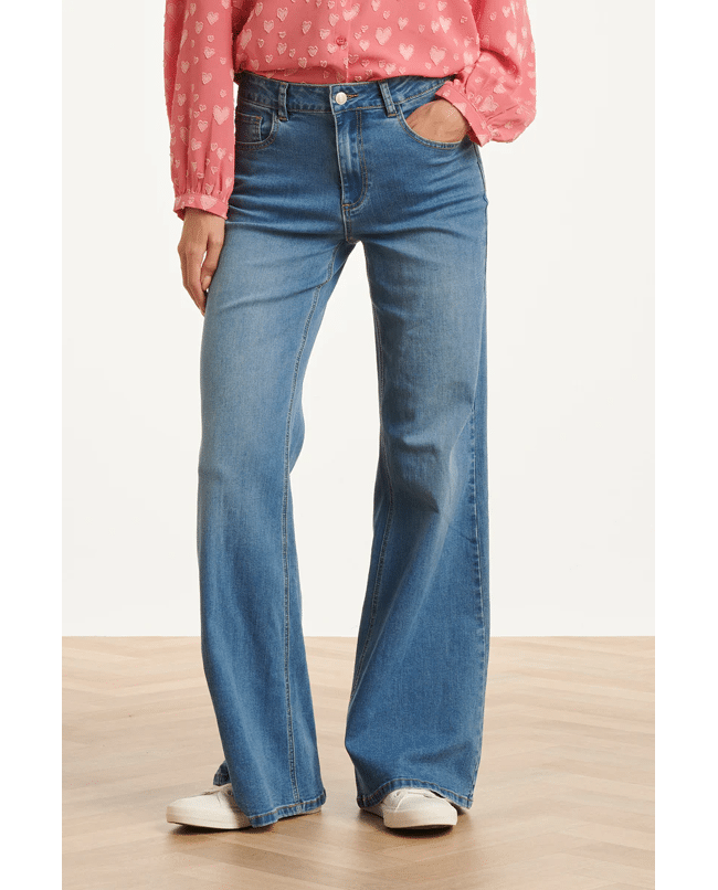 Het flared model creëert een elegant silhouet, terwijl de zachte denim met stretch meebeweegt voor ultiem draaggemak. Dankzij de klassieke wassing is de broek eindeloos te combineren – van casual met sneakers tot gekleed met een blazer en hakken. Hoge tailleband voor extra ondersteuning en stijl.
