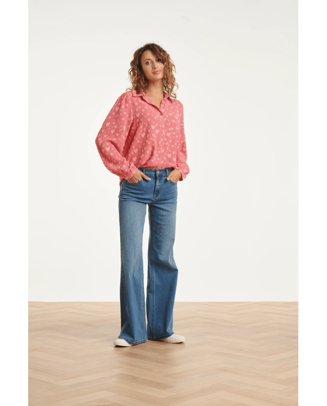 De flatterende pasvorm en lichte wassing maken deze flared jeans een echte eyecatcher.