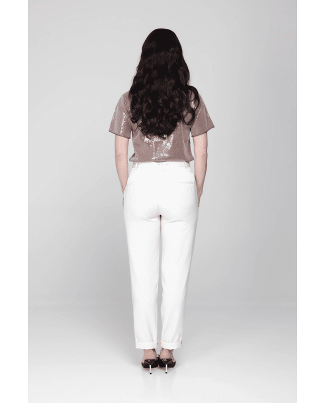 Het model is voorzien van een hook-and-eye sluiting en een strikdetail. Dankzij de zachte, soepele stof met Lyocell valt de broek prachtig en is hij comfortabel om te dragen.