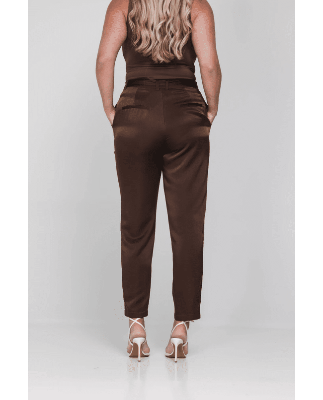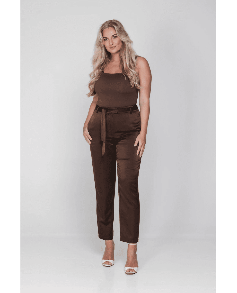 Deze soepelvallende broek geeft je outfit moeiteloos een elegante basis. Perfect voor kantoor, een etentje of een stijlvolle weekendlook. De Floor Pants in Espresso is een fitted pantalon die je look direct een chique uitstraling geeft.
