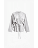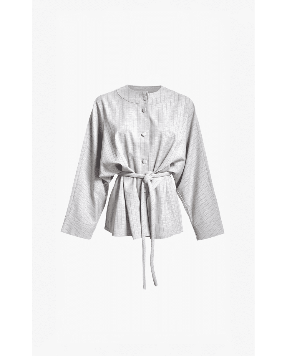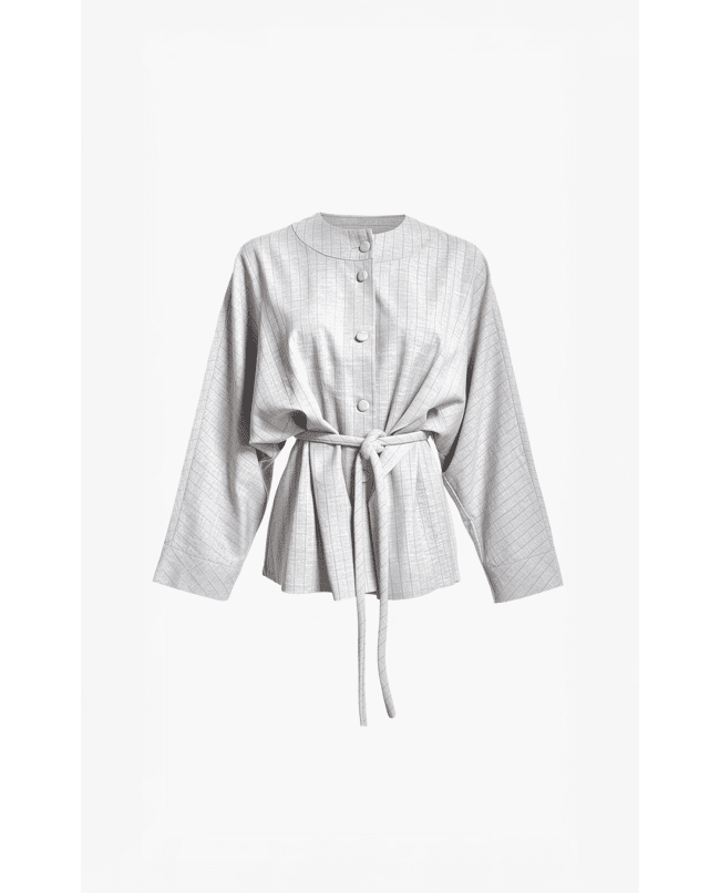 Het strikkoord accentueert de taille op een ontspannen manier. Dit jasje voelt verzorgd, maar nooit te formeel.