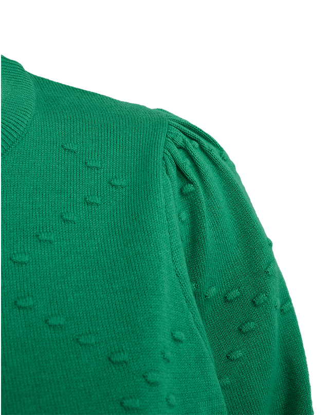 Het verfijnde breisel geeft textuur, zonder druk te zijn. Perfect voor een rustige look met subtiele flair.