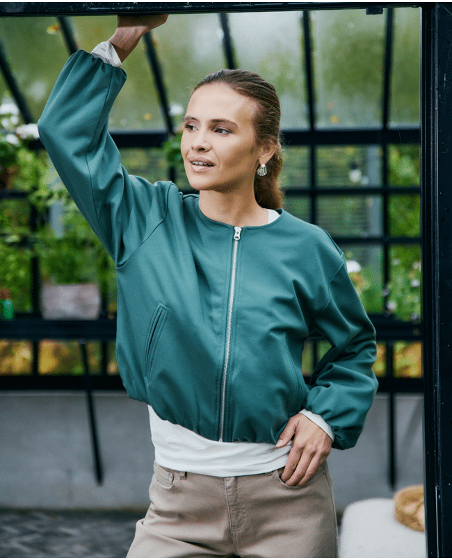 Een moderne basic in een diepe groentint. Dit bomberjack combineert comfort met een cleane uitstraling – ideaal voor laagjes in het tussenseizoen.
