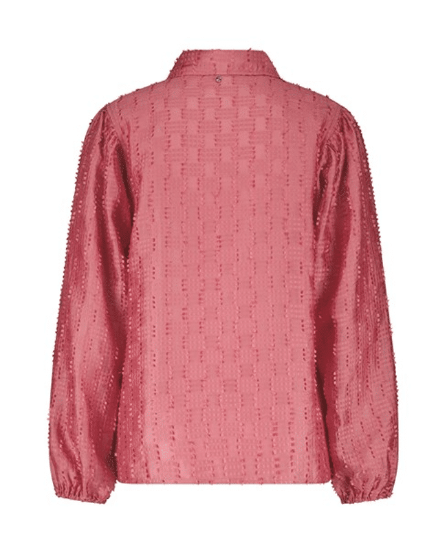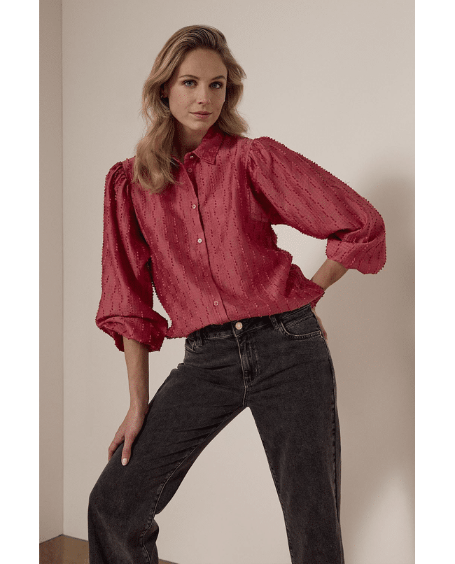 Het delicate borduursel voegt een subtiele, maar verfijnde textuur toe, waardoor de blouse een chique uitstraling krijgt. Het tijdloze ontwerp maakt het eenvoudig om te combineren met zowel jeans als een nette broek, en het soepele materiaal zorgt ervoor dat de blouse moeiteloos valt voor een flatterende pasvorm.