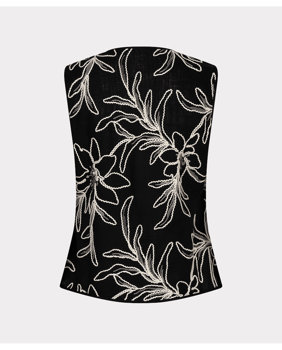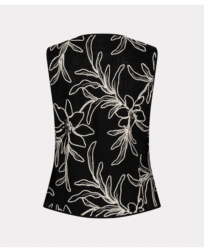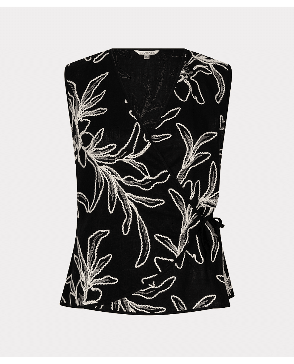 Deze zwarte wrap-top met bloemenborduursel is een stijlvolle keuze voor zonnige dagen. Het mouwloze design en de linnenmix geven een luchtige, vrouwelijke uitstraling.