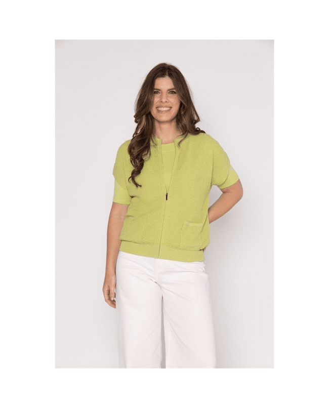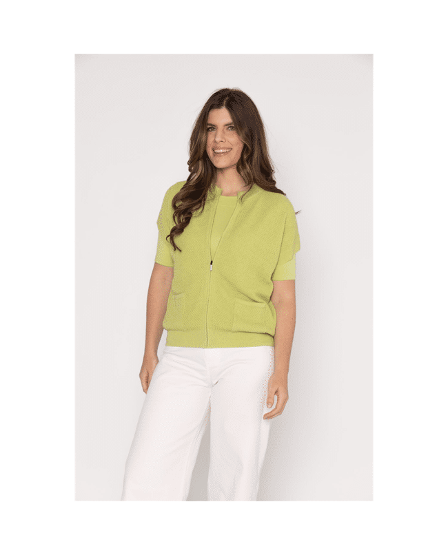 Dit mouwloze dames vest in Spring Green is een frisse toevoeging aan je voorjaarsgarderobe. De zachte groentint en de fijne structuur geven het vest een sportieve, maar verzorgde uitstraling. Perfect om te dragen over een blouse, T-shirt of jurk.