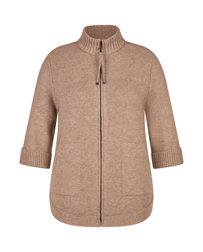 Gebreid dames jasje van Rabe met 3/4 mouwen, ritssluiting en opgestikte zakken