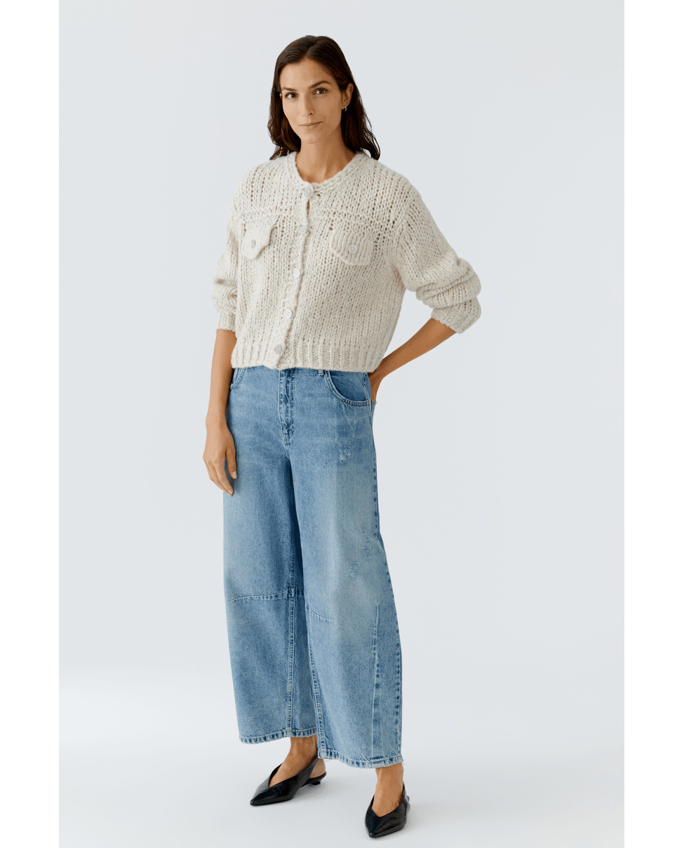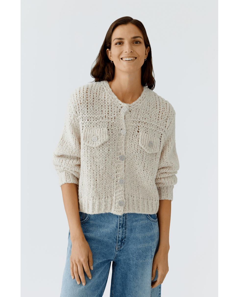 Gebreid damesvest van Oui met borstzakjes, knoopsluiting, lange mouwen en ronde hals