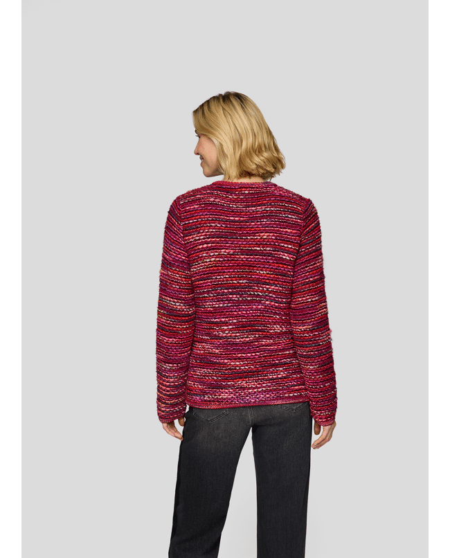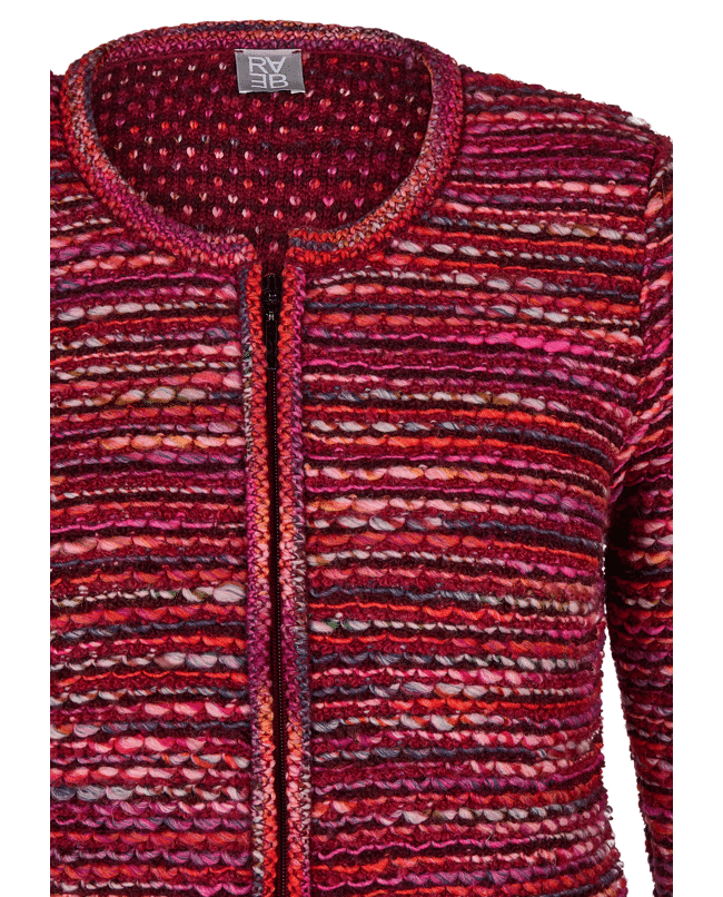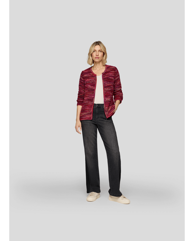 Gebreid damesvest van Rabe met bouclé-structuur, ronde hals, ritssluiting en lange mouwen