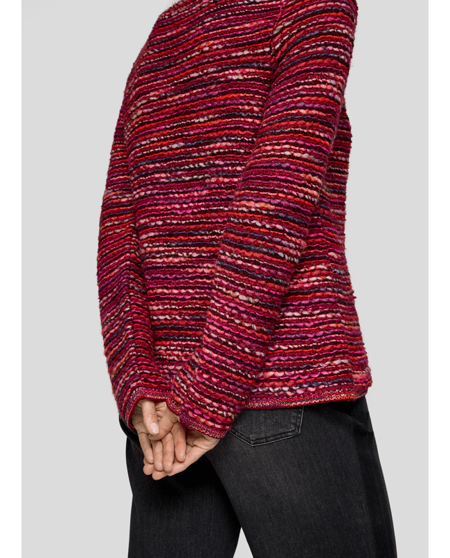Ervaar warmte en stijl met dit bouclé vest van Rabe. De rijke roodtinten en gestructureerde brei maken dit item perfect voor frisse herfstdagen en winterse lagen.