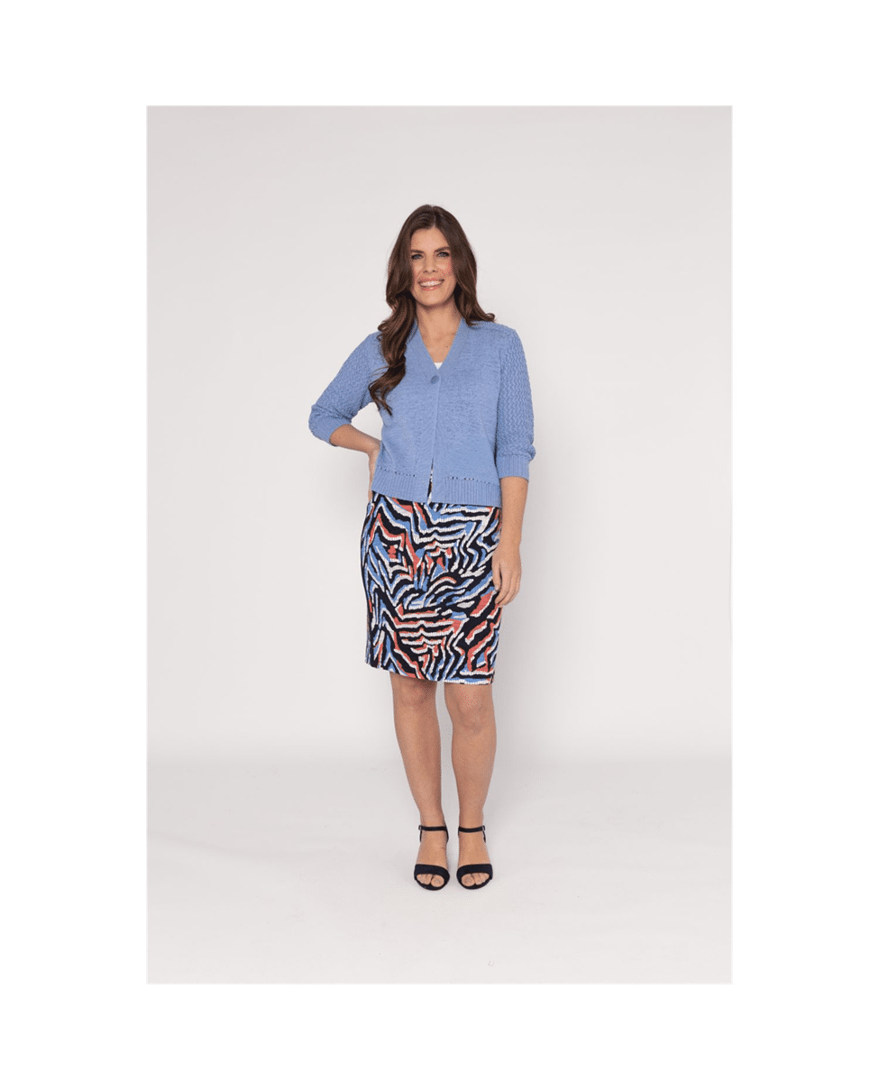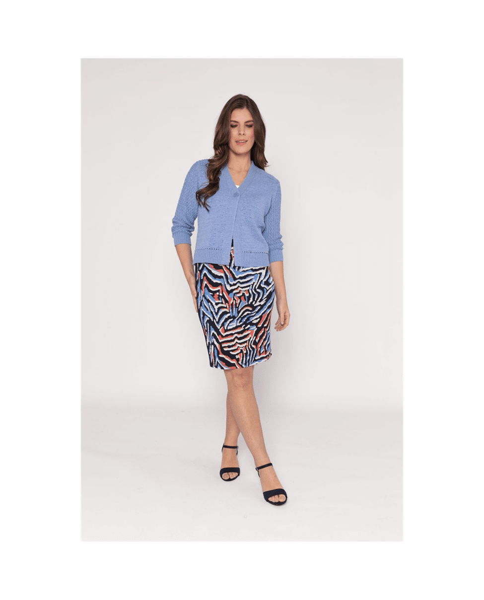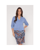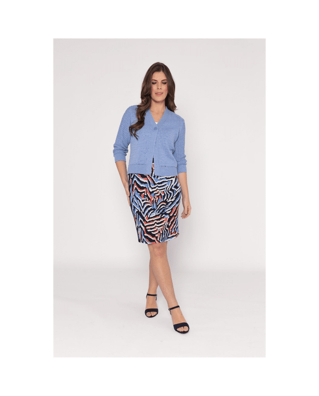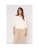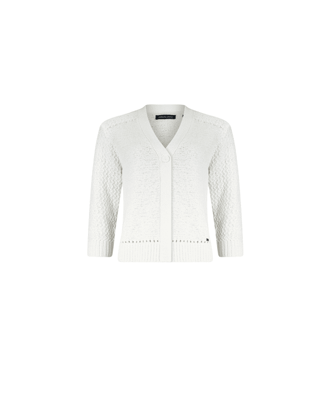 Dit korte dames vest met V-hals in zandkleur is zo’n item dat je er moeiteloos bij pakt. De fijne fancy steek en driekwart mouwen geven het vest een luchtige, verzorgde uitstraling – perfect voor frisse lentedagen of als extra laagje in de zomer.