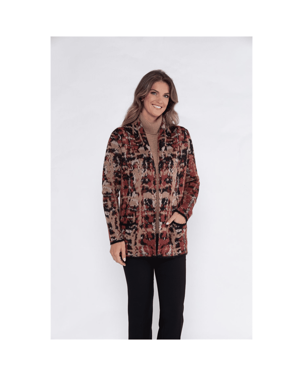 Gebreid damesvest van Roberto Sarto met jacquard patroon, shawlkraag en lange mouwen
