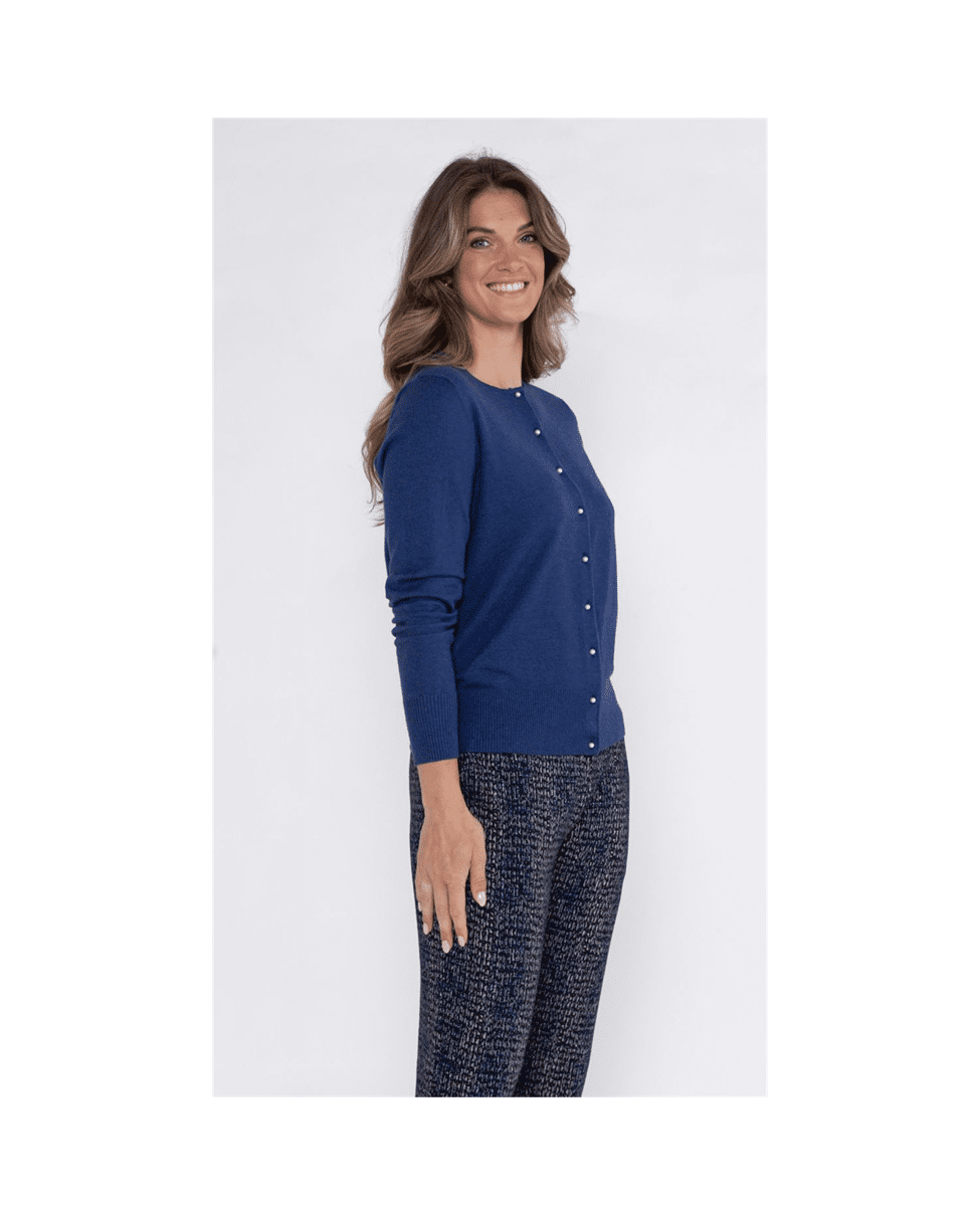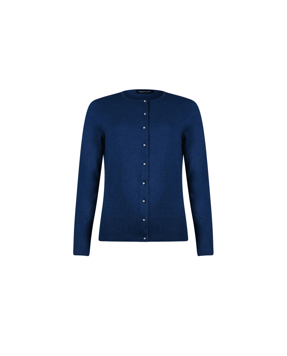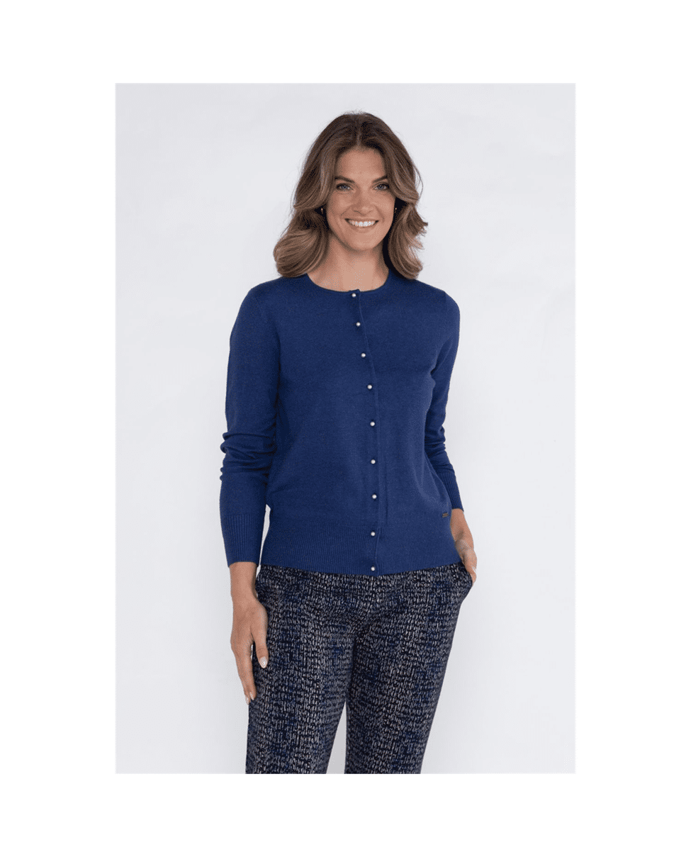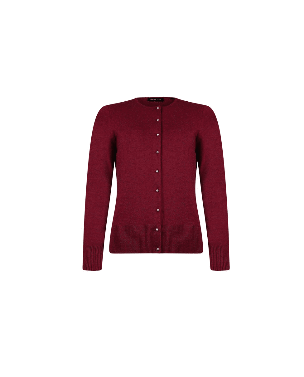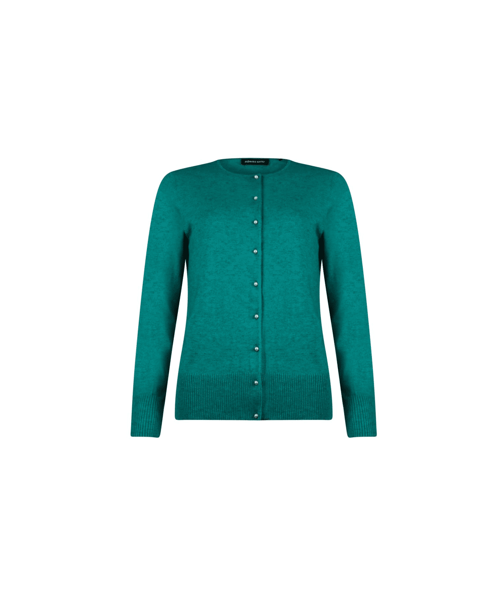 Gebreid damesvest van Roberto Sarto met parel knoopjes, ronde hals en lange mouwen