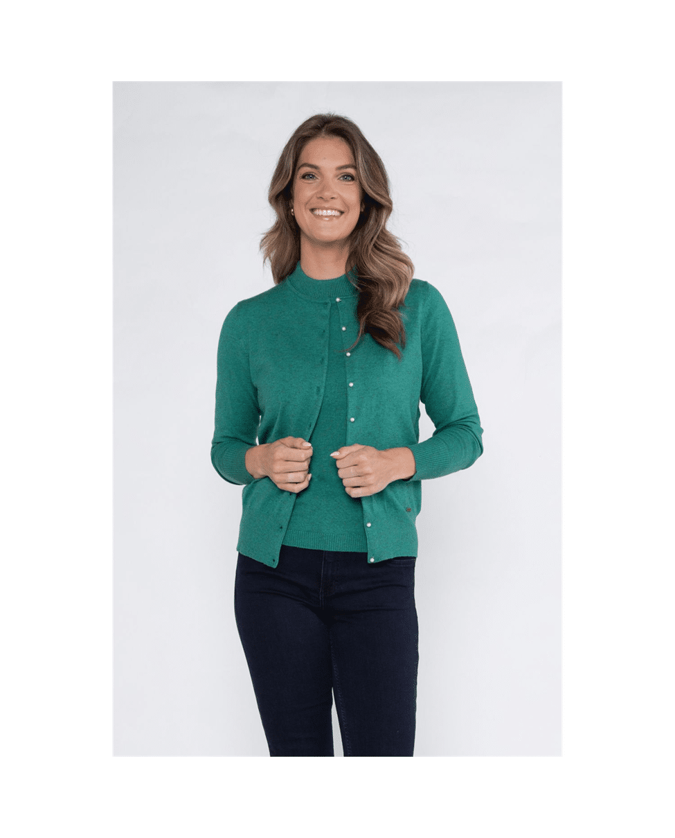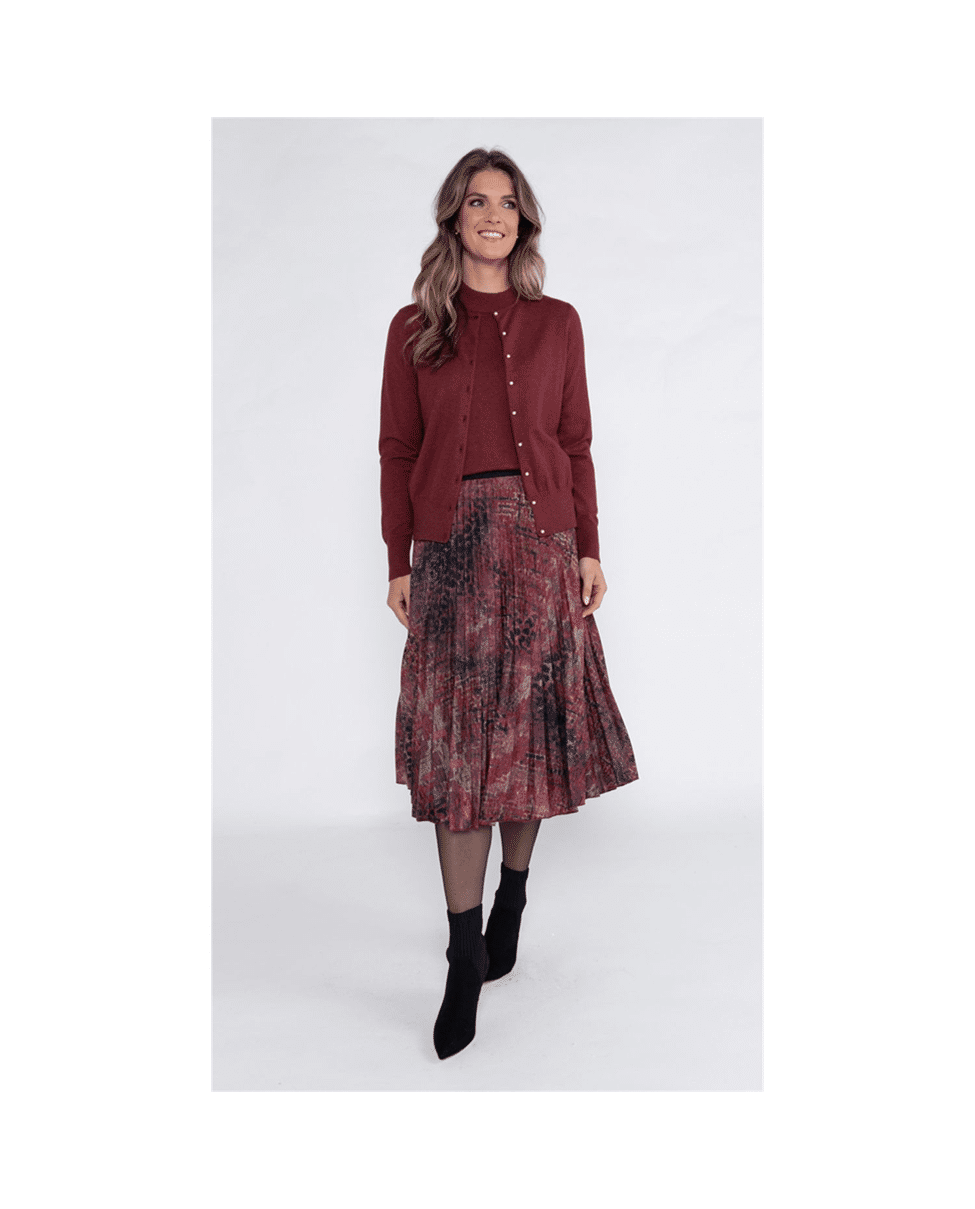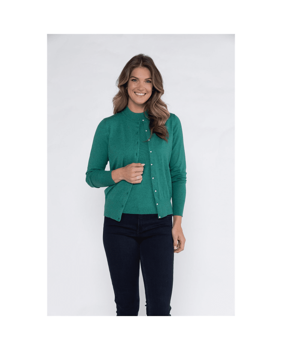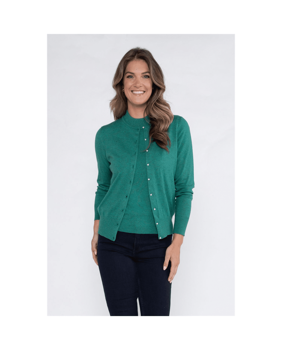 Een rond hals vestje uitgevoerd in een viscosemix met subtiel glansdraadje. De parelknopen geven dit tijdloze vest een elegante en vrouwelijke uitstraling.