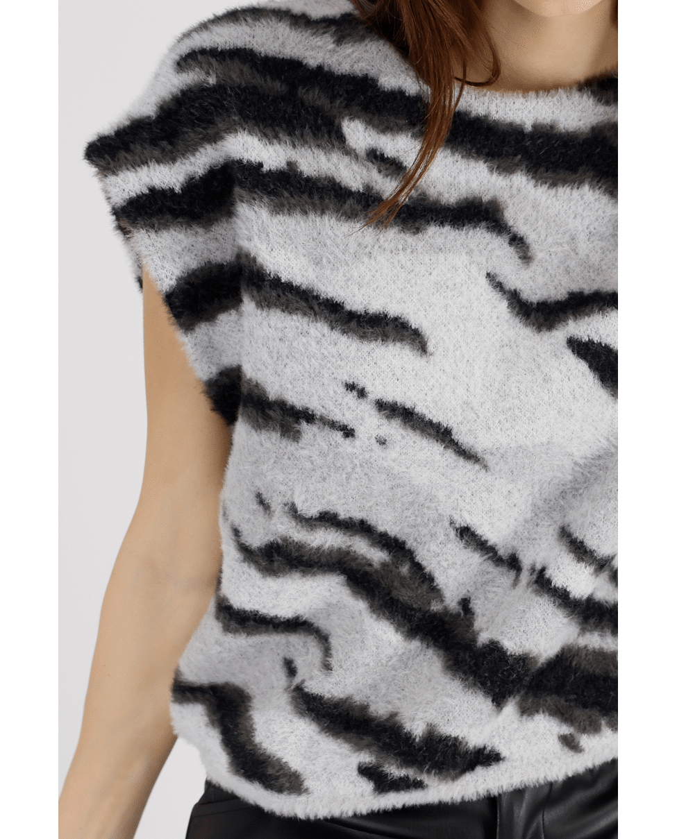 Trui met zachte textuur en opvallend tijgerpatroon. Perfect voor laagjes en een stoere, moderne look.