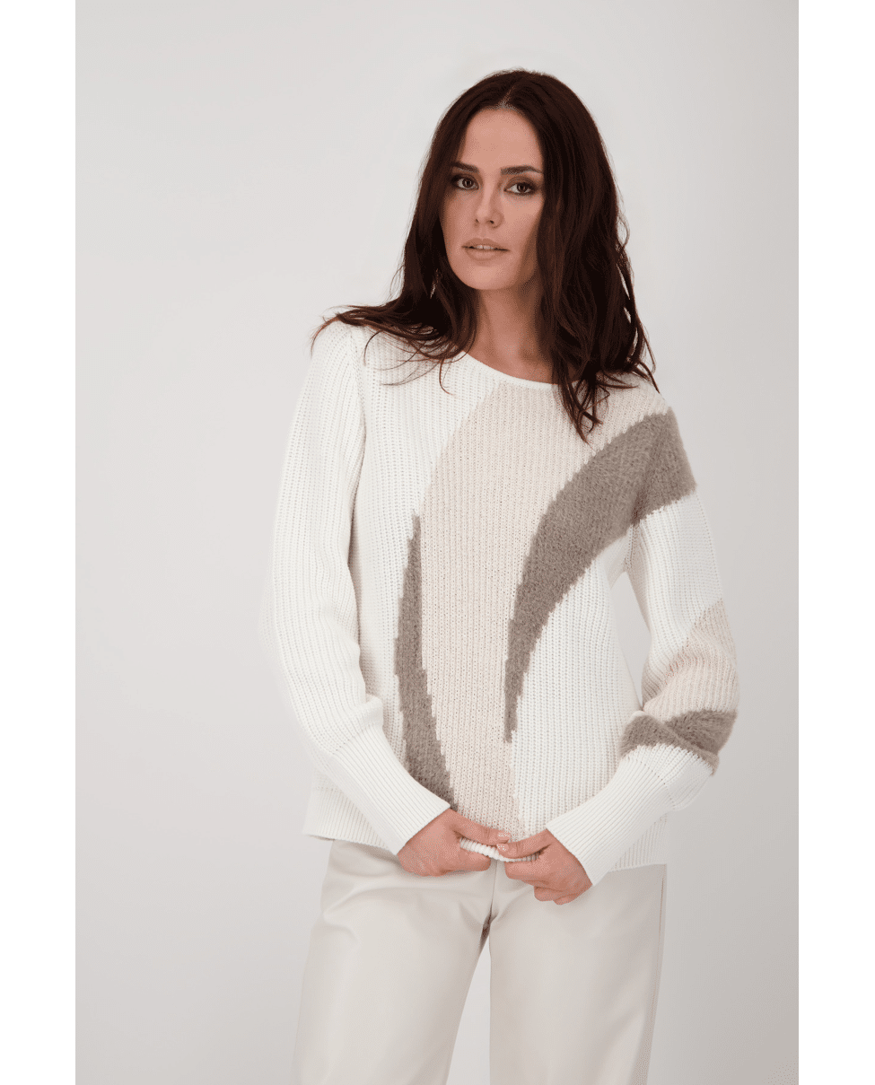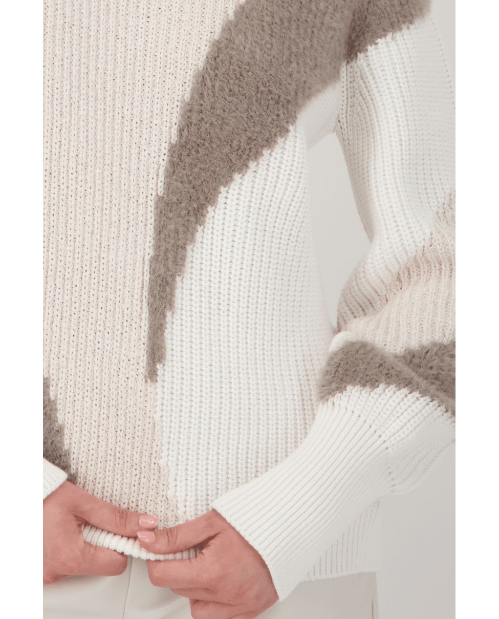 De vloeiende lijnen en zachte kleuren geven deze trui een moderne, kunstzinnige look.