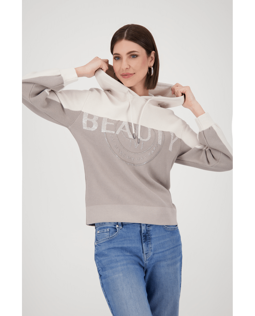 Gebreide katoenen damestrui van Monari met kleurblok-design en strasbelettering