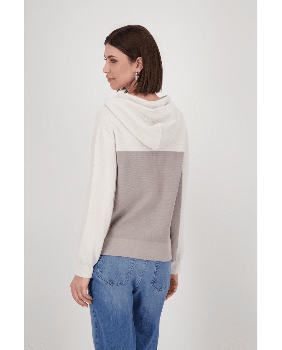 Comfort met een twist: deze gebreide hoodie in zachte kleurblokken is perfect voor ontspannen dagen met een vleugje sparkle. Ideaal voor thuis of casual onderweg.
