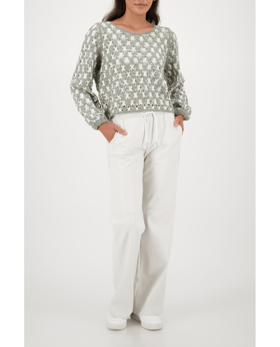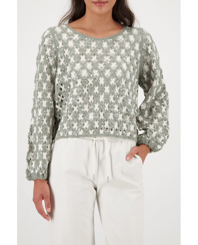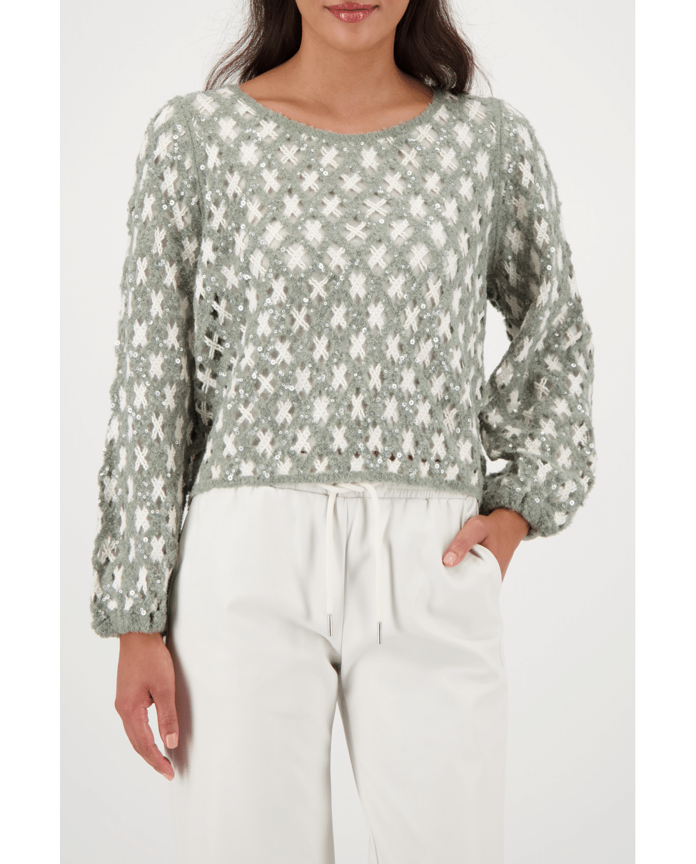 Deze luchtige trui met speels opengewerkt breisel combineert textuur met zachtheid. Perfect voor frisse dagen met een stijlvol accent.