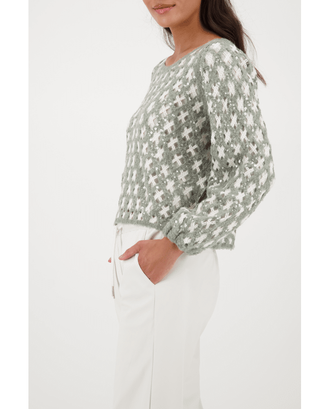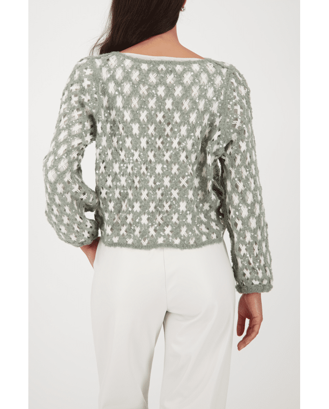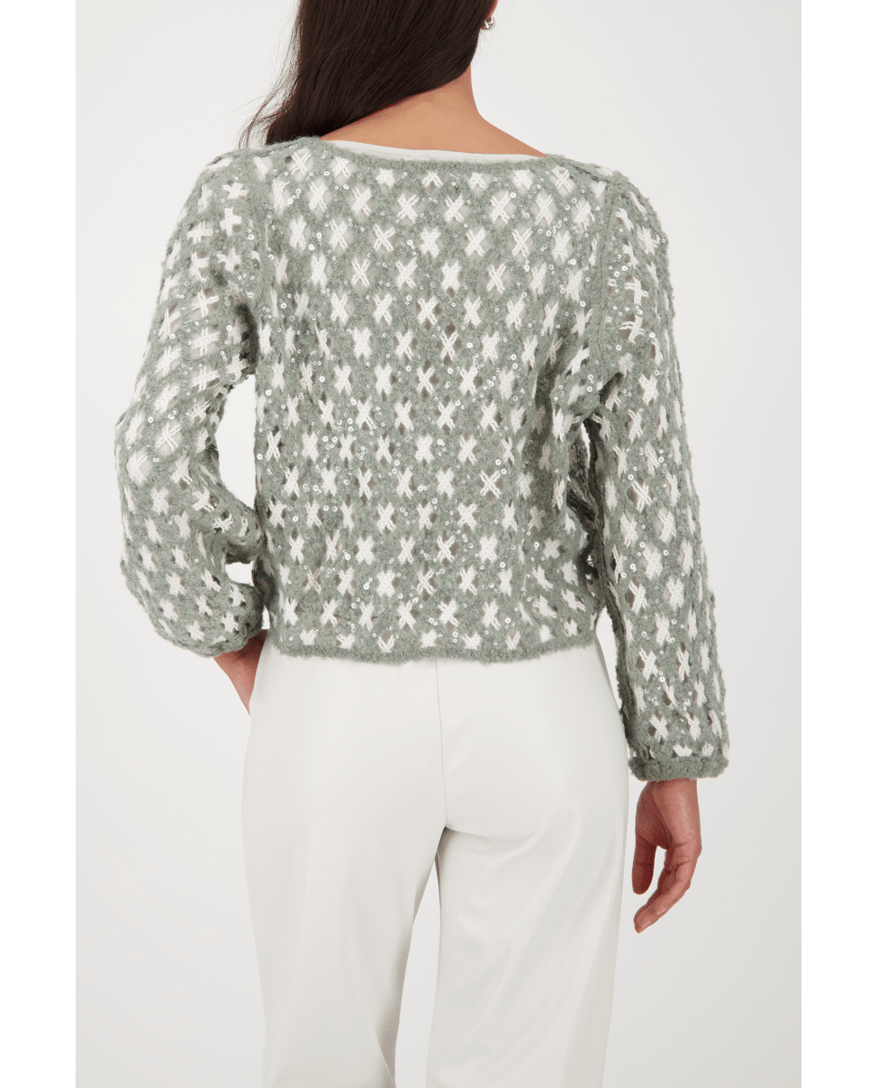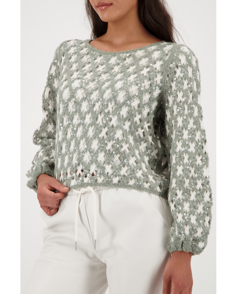 Deze luchtige trui met speels opengewerkt breisel combineert textuur met zachtheid. Perfect voor frisse dagen met een stijlvol accent.