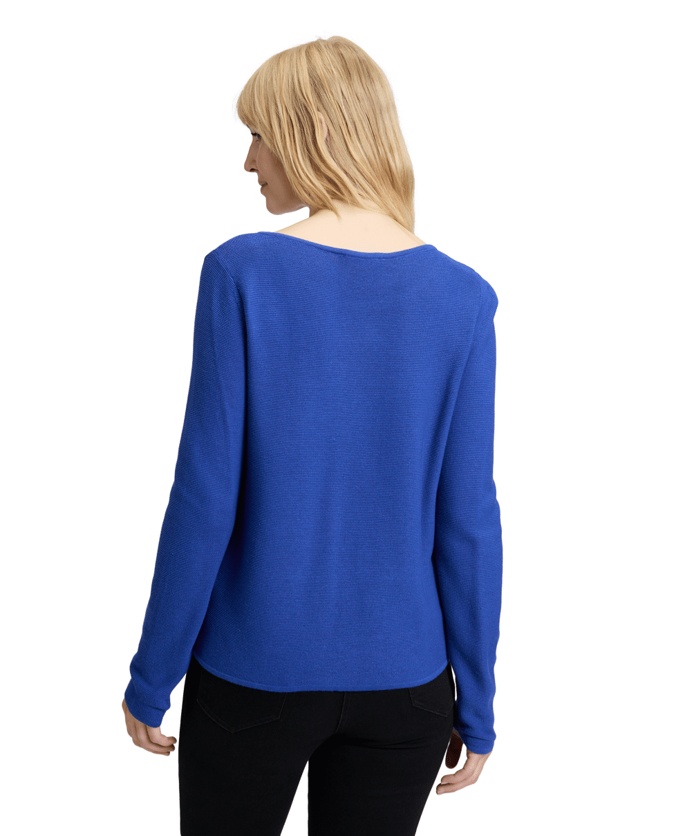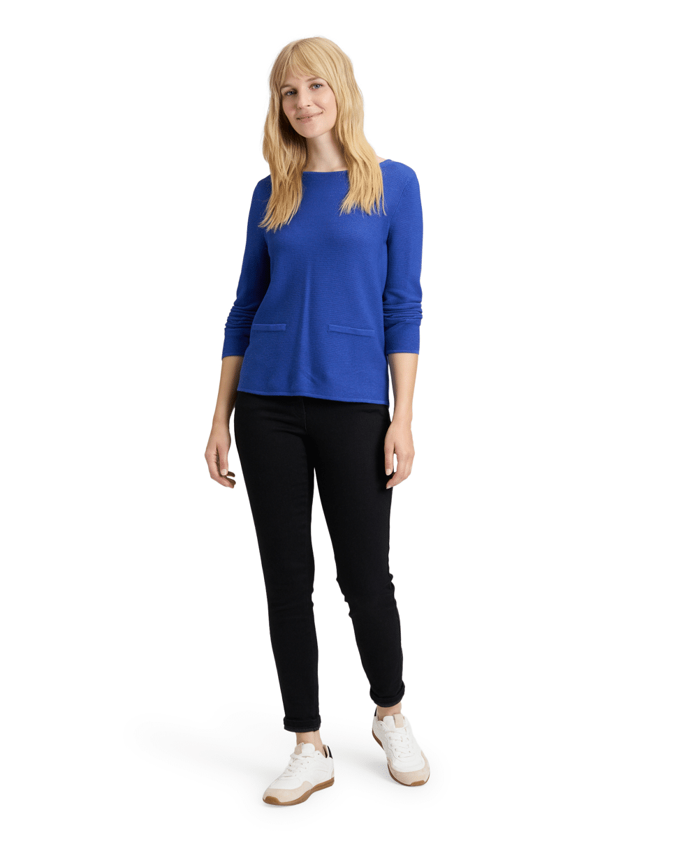 Gebreide dames trui van Betty Barclay met omboorde zakken met sierknoop, lange mouwen en ronde hals