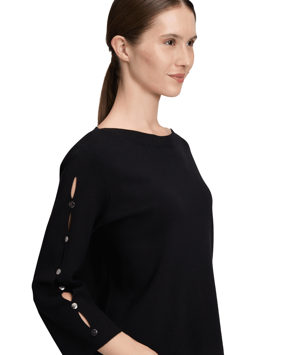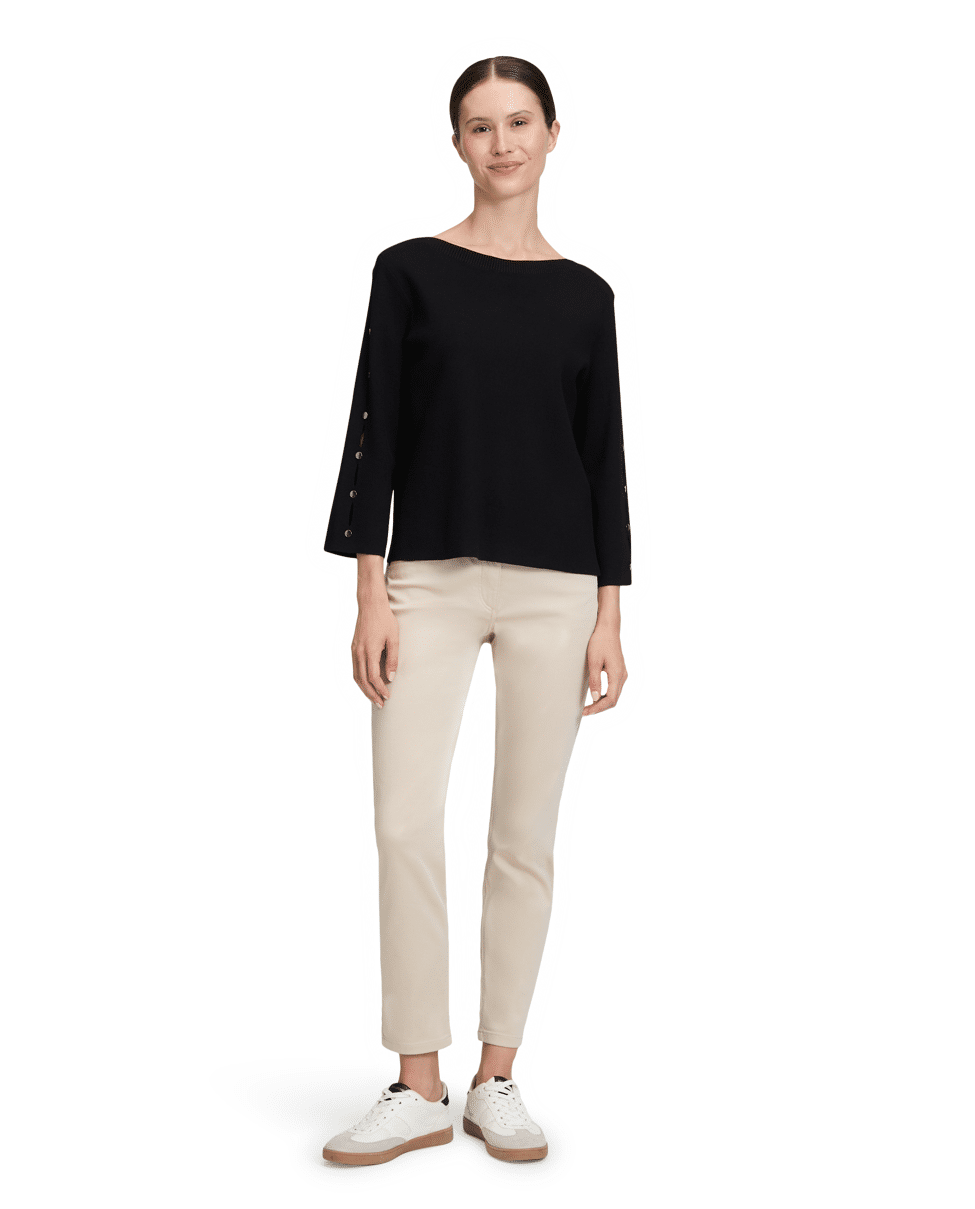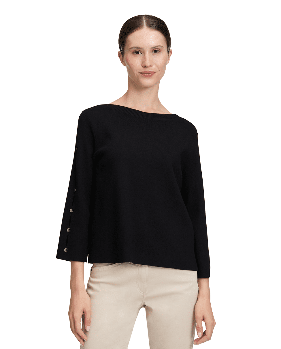 Gebreide dames trui van Betty Barclay met opengewerkte ¾ mouwen, knopen en boothals