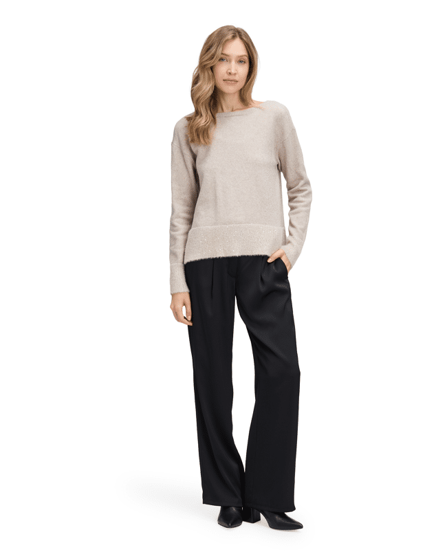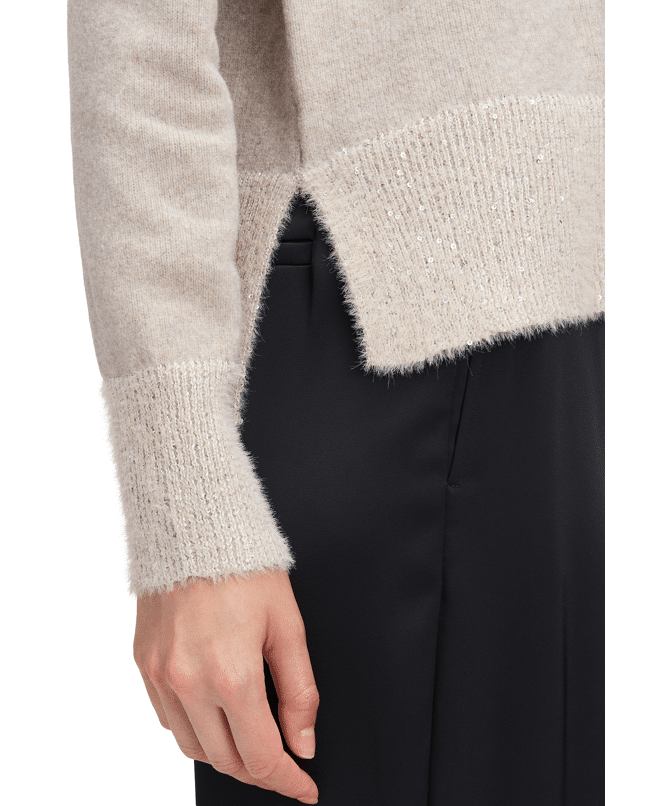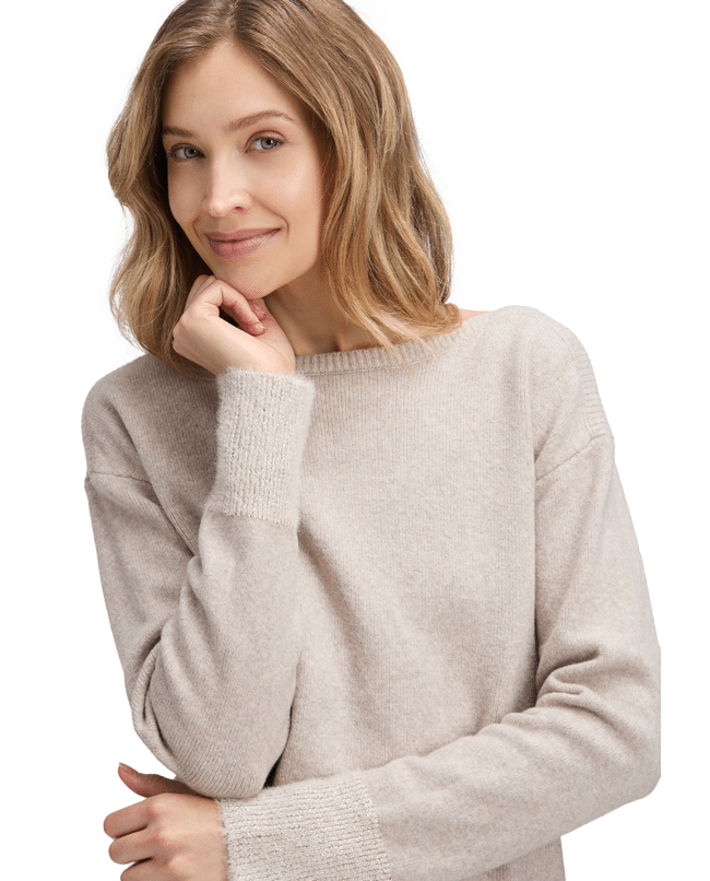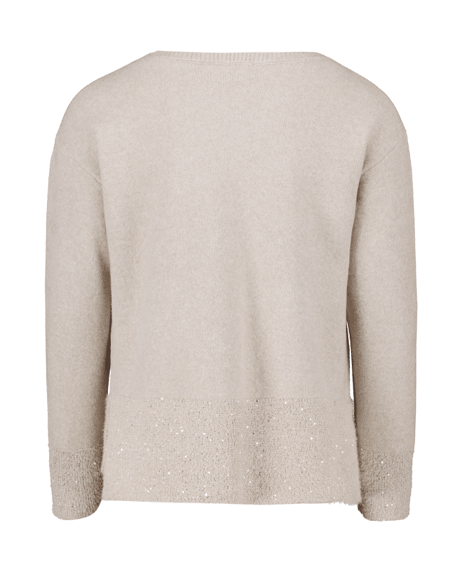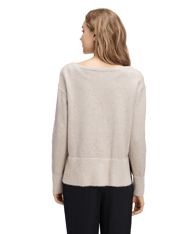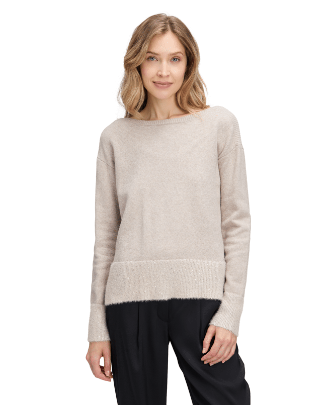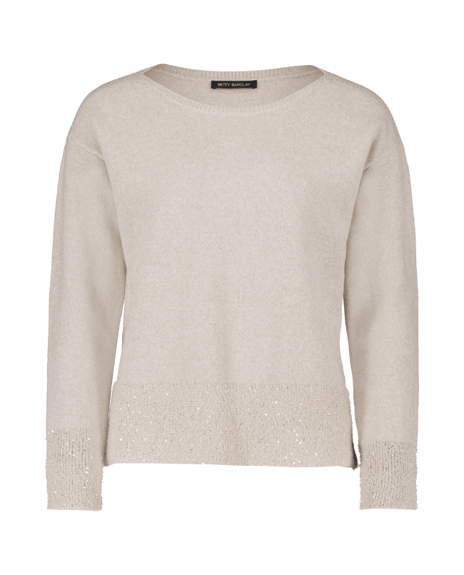 Gebreide dames trui van Betty Barclay met boothals, pailletten aan de brede boorden van de trui en de lange mouwen