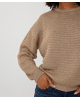 Een losvallende trui met subtiele lurex glans in een zachte zandkleur. Deze knit brengt comfort en feestelijke flair moeiteloos samen.