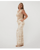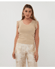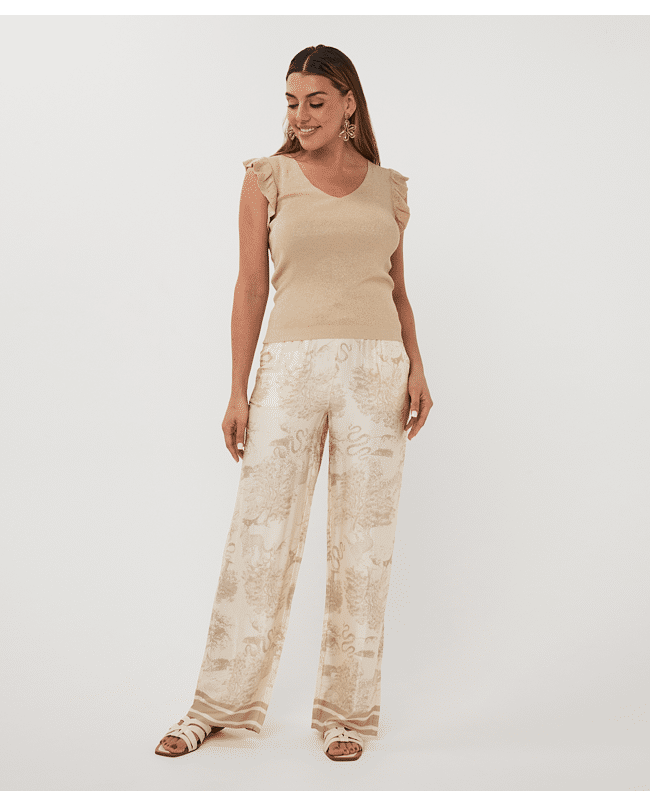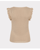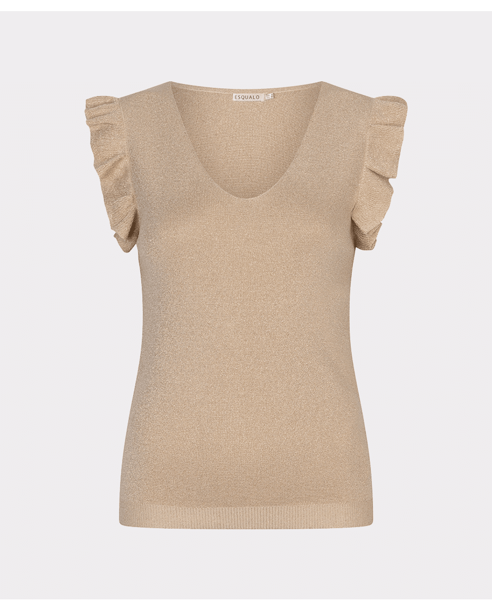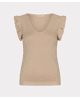 Deze sandkleurig gebreide trui met ruffle mouw en V-hals is een verfijnde basic met een vrouwelijke twist. Gemaakt van een zachte viscosemix en ideaal voor zowel werk als vrije tijd.