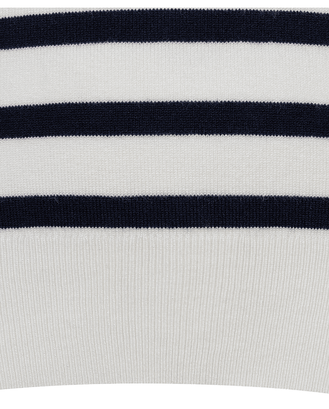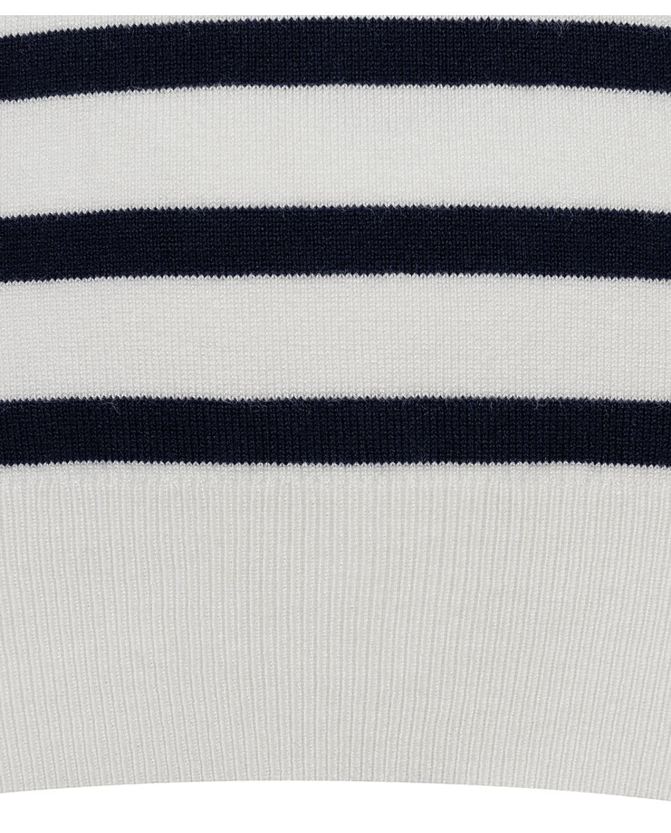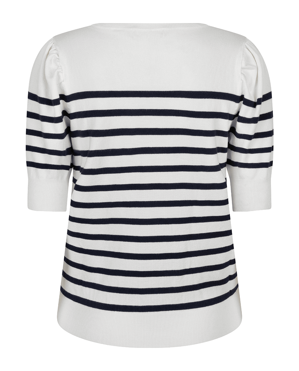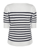 Zomerse knit met korte mouwen en klassieke navy-witte streep. De lichte viscosemix en het tijdloze ontwerp maken dit een onmisbare basic met een frisse, maritieme touch.