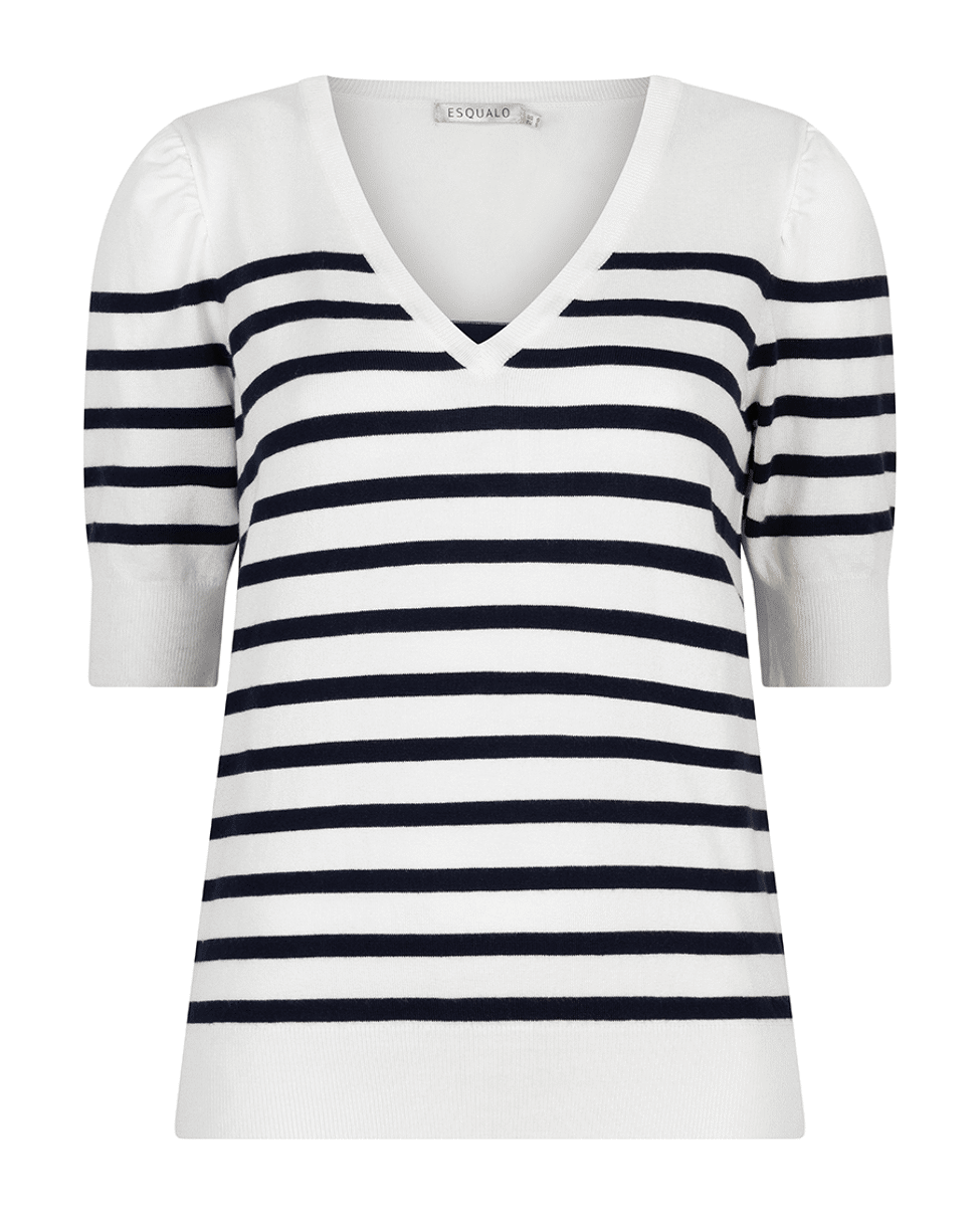 Gebreide damestrui van Esqualo met strepen patroon, korte mouwen en V-hals