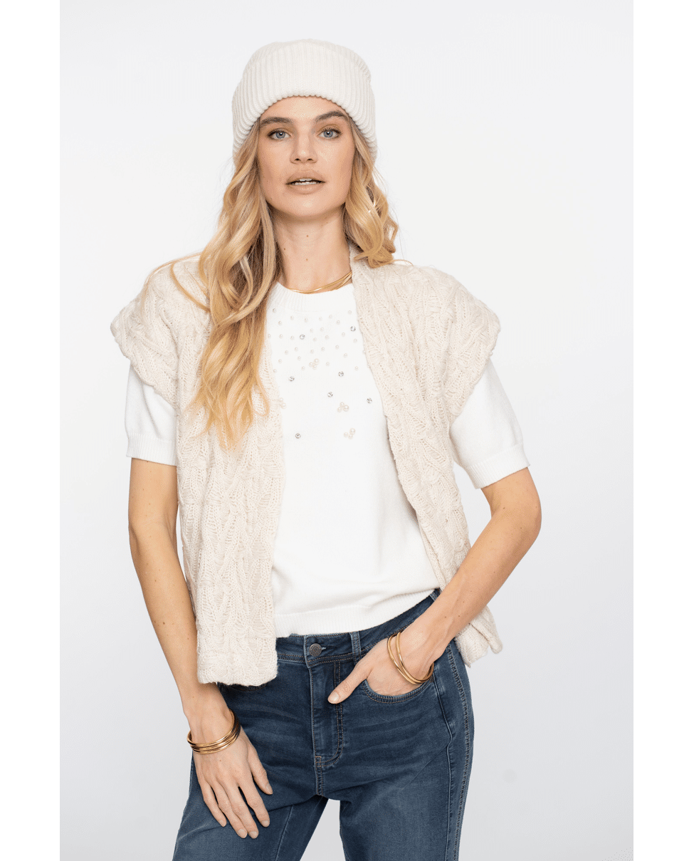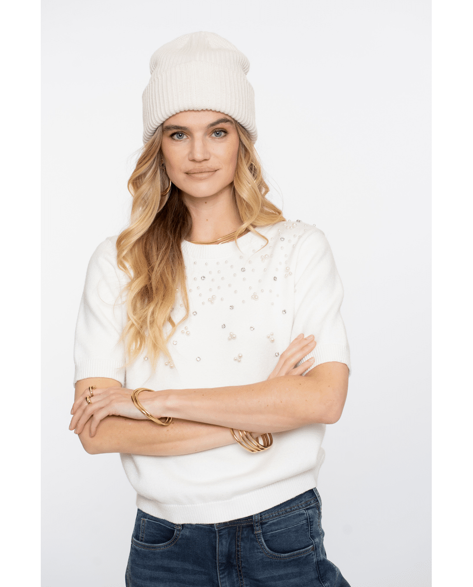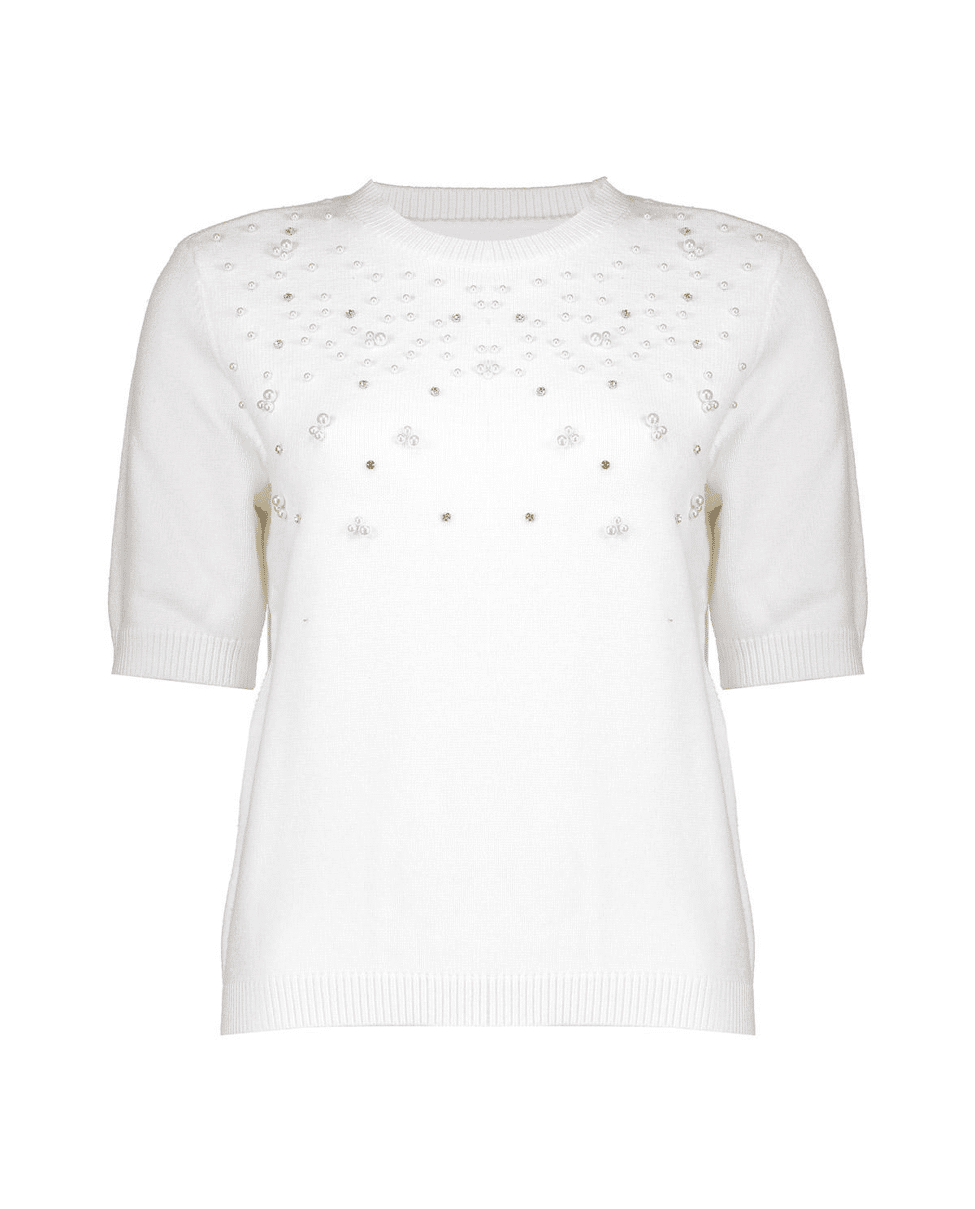 Gebreide damestrui van Geisha met parelversiering , ronde hals en korte mouwen