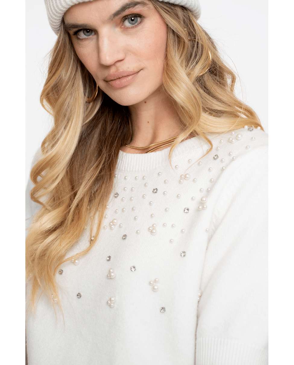 Een zachte trui met elegante details. De subtiele parelversiering geeft deze  pullover een chique, feestelijke uitstraling.